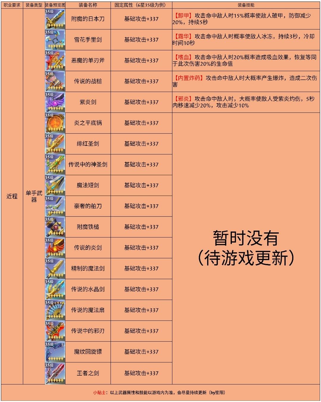 【笙阳】传奇武器一览-单手武器
