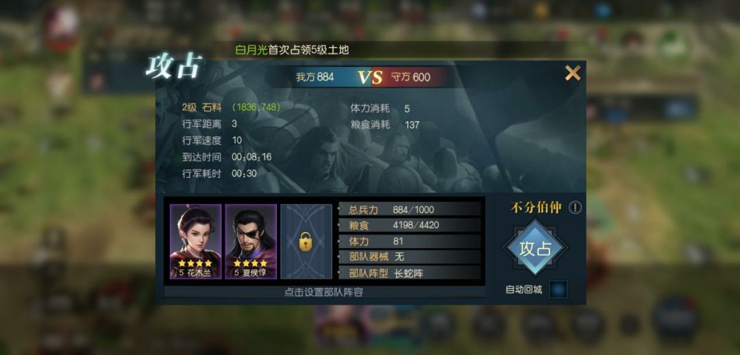 我玩了两天,心得战术就是最好军队最近的地一块一块开荒,这样可以缩短行军的时间,能够更快速度开荒更大的面积。到了一定的时间也一定要及时给军队补给,不然兵力损伤太多,实力也会被削弱的,还有就是主将疲劳的时候需要休息调整,这些时间都可以继续做其他的日常任务,更能够快速提升。