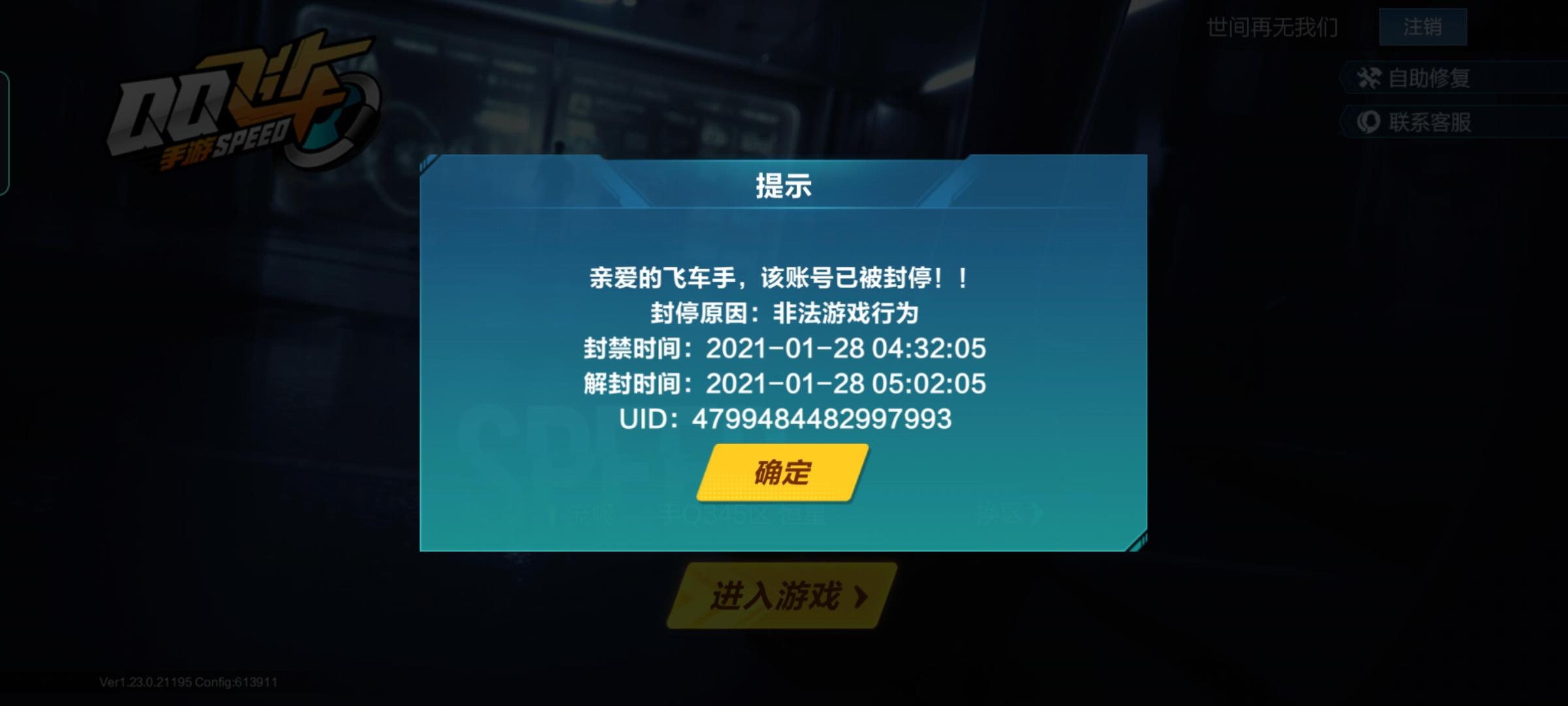 我都进游戏了被服务器断开,要重登的时候就告诉我封号了