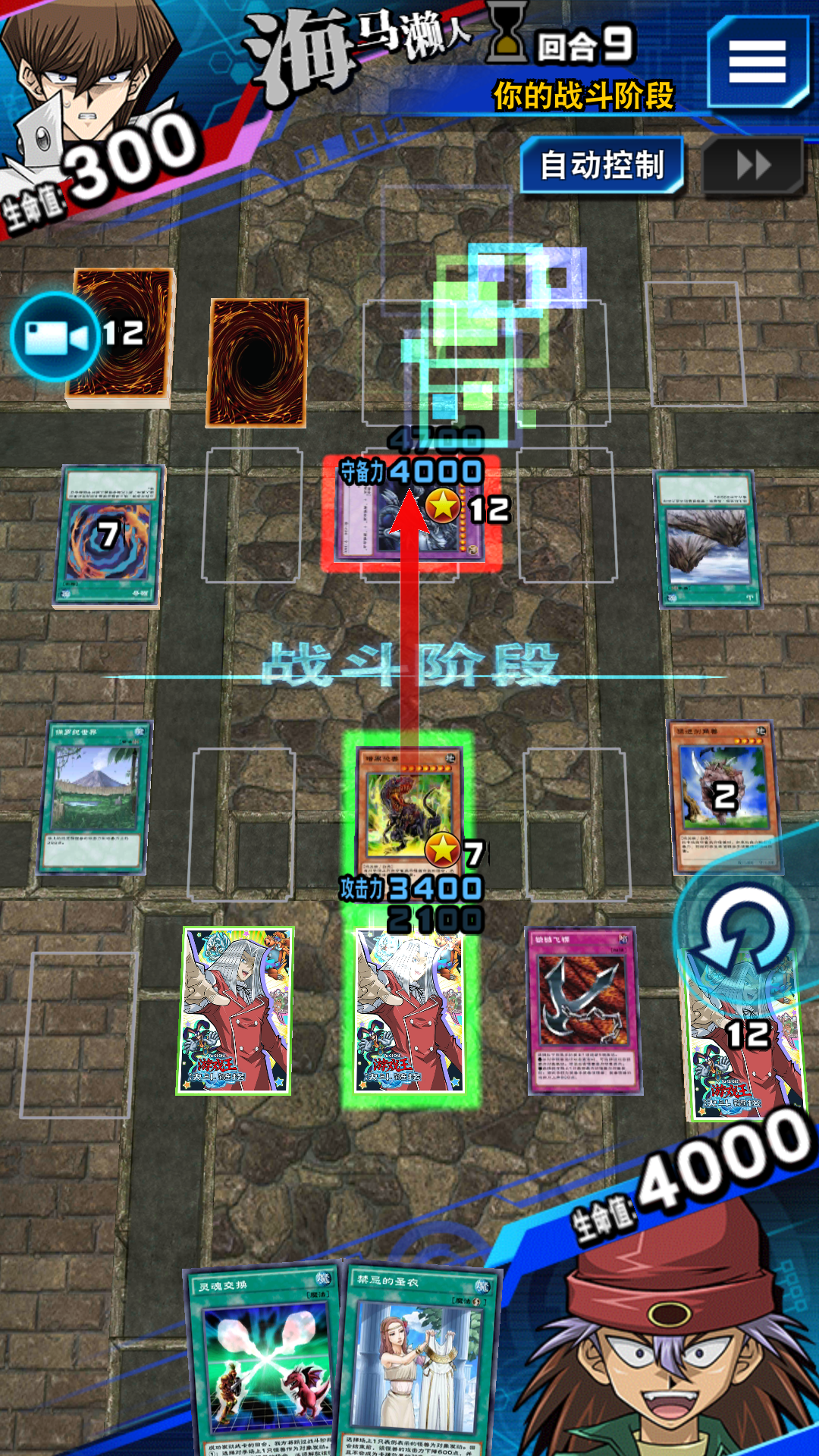 今天在打纪年史的海马,对面只有青眼究极龙守备表示,我方的暗黑恐龙没有办法直接攻击玩家,截图在下面,在战斗阶段攻击的剪头只有指向青眼究极龙,没有指向对方玩家,请问这个是不是bug?