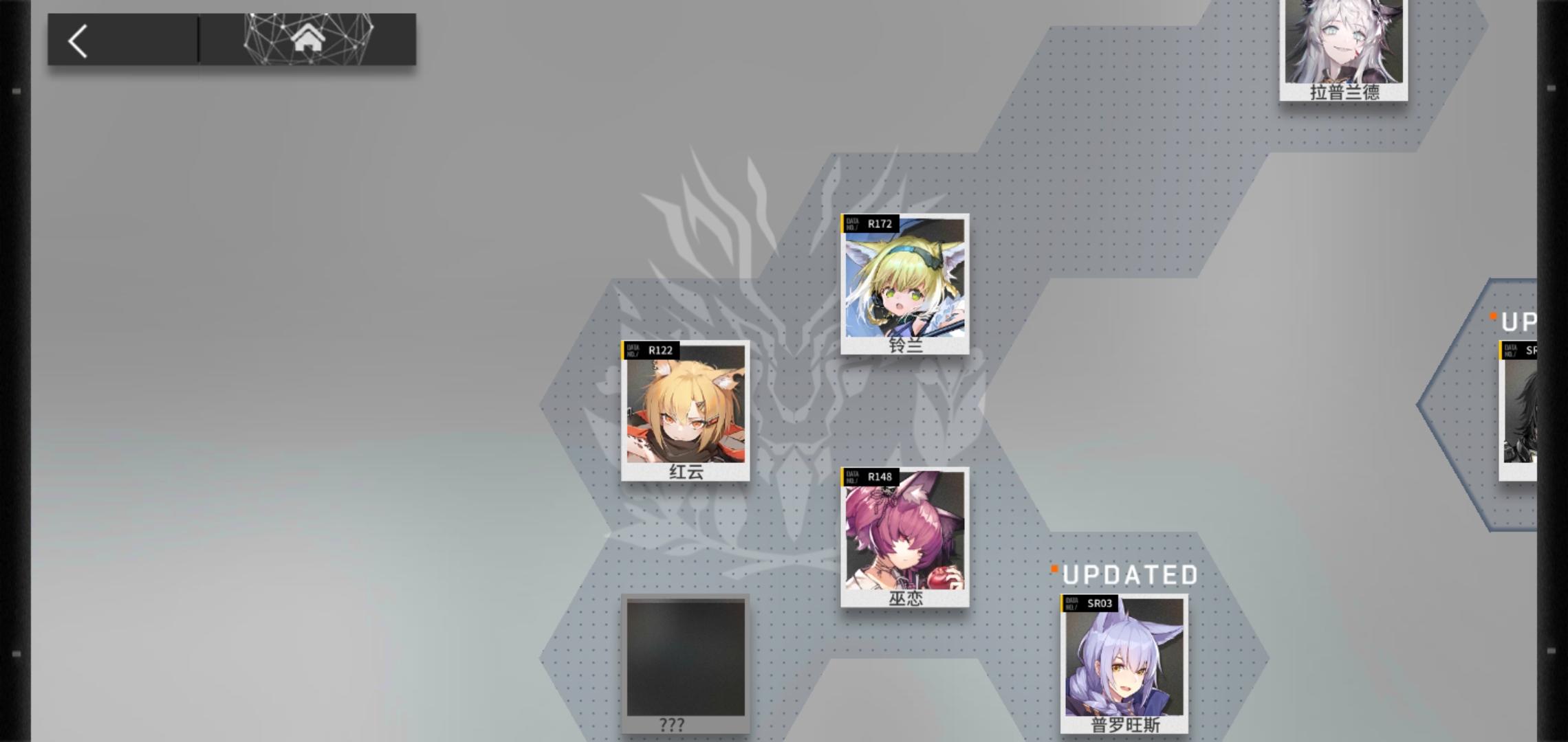我记得以前的关系图如果是明确阵营的干员,那么只要总信赖超过一半就会显示没获得的相应阵营干员名字;如果是没明确阵营的干员,那么所有没被框住的干员总信赖超过一半也会显示没获得的无明确干员名字。而现在改版就直接用???代替了,都分不清谁是谁,以前哪个干员没抽到一目了然,现在这是要全图鉴才清楚完整的干员分布了。