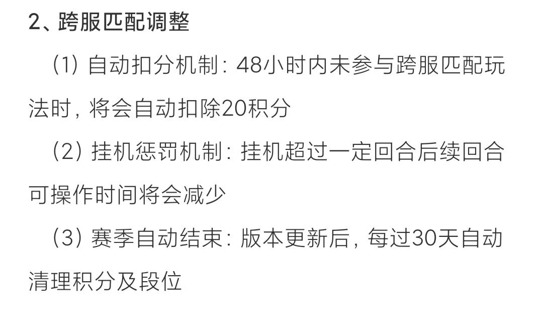新春活动还不错,这个跨服也太难受了。挂机惩罚和烧绳子有啥子关系,吃药你也没管,好家伙跨服最恶心人的部分你是一个没改。两天不打就自动掉分,荣耀上了王者一周不打才掉星,要是打打癫疯赛也不会掉星。赛季一个月一更新,我想问有段位奖励吗,没有就难受,非常难受。