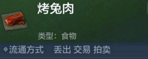 另外,食用烤兔肉之后,能够增加180点饱食度,并且能够获得少许灵气;喂养给宠物也能增加饱食度和灵气。同时,运用该配方还可能制作出“炭烤肉串”和“小块烤肉”,食用效果都是一致的,角色食用后可以增加饱食度和灵气,宠物也是如此。