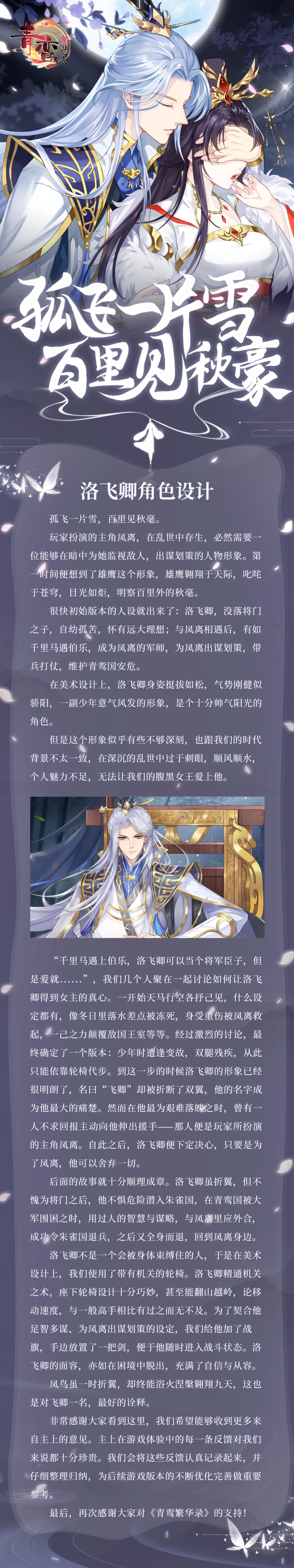青鸾国2号编辑:各位主上,为了纪念失去的1号同事,今天给大家带来了洛飞卿的背景故事文章,请主上们自行查看。