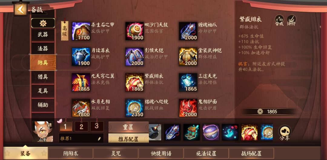 剩下两件辅助装备没什么好说的,辅助嘛,得出,给队友aoe抗性,阴阳玉现在后期加90多物抗,很强了,自己也加哦,加起来160物抗一件装备,辅助法衣也一样是必出的。然后就是镜子,残血了不用回家,慢慢回,还能去q对面反正核心思路就是死不回家,血没了自己加,一直拖着对面的人,追我就跑,残血想跑我就追你,带上点燃,天赋豹袭,肉爪加上山童的基础多段技能,收割起来不要太爽,反正和我对线的ad大多都有山童后遗症了。