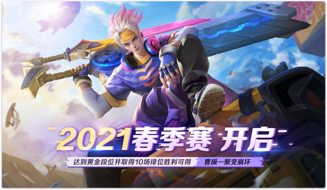 2月1日开启,赛季奖励限定皮肤【曹操·聚变崩坏】上线,达到黄金段位并取得10场排位胜利即可领取。