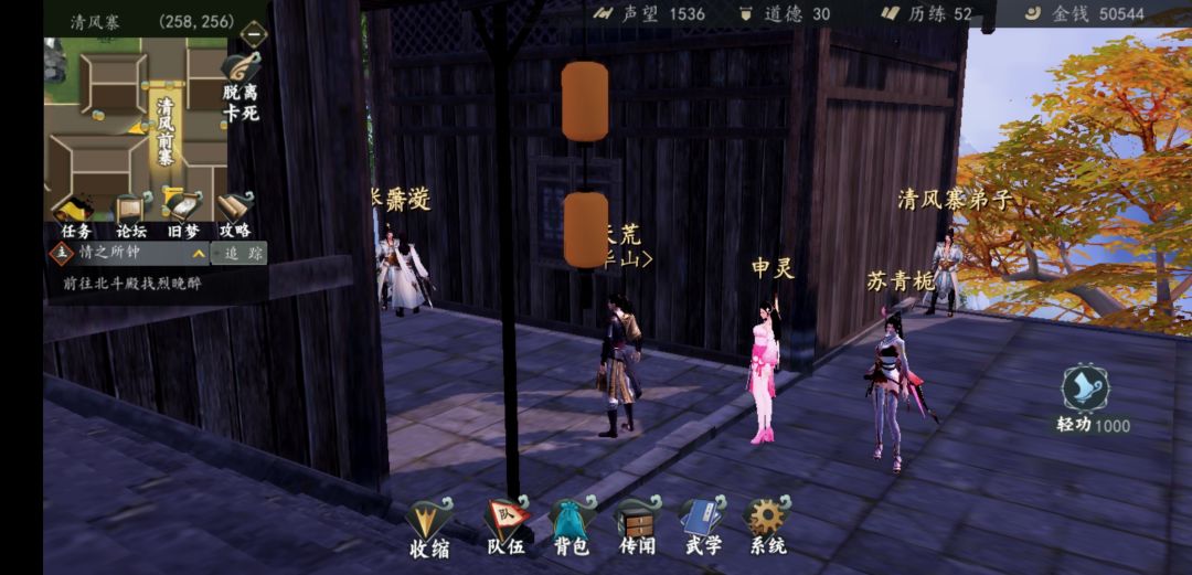4.出村主线提示去北斗殿我们先不去,直奔清风寨。