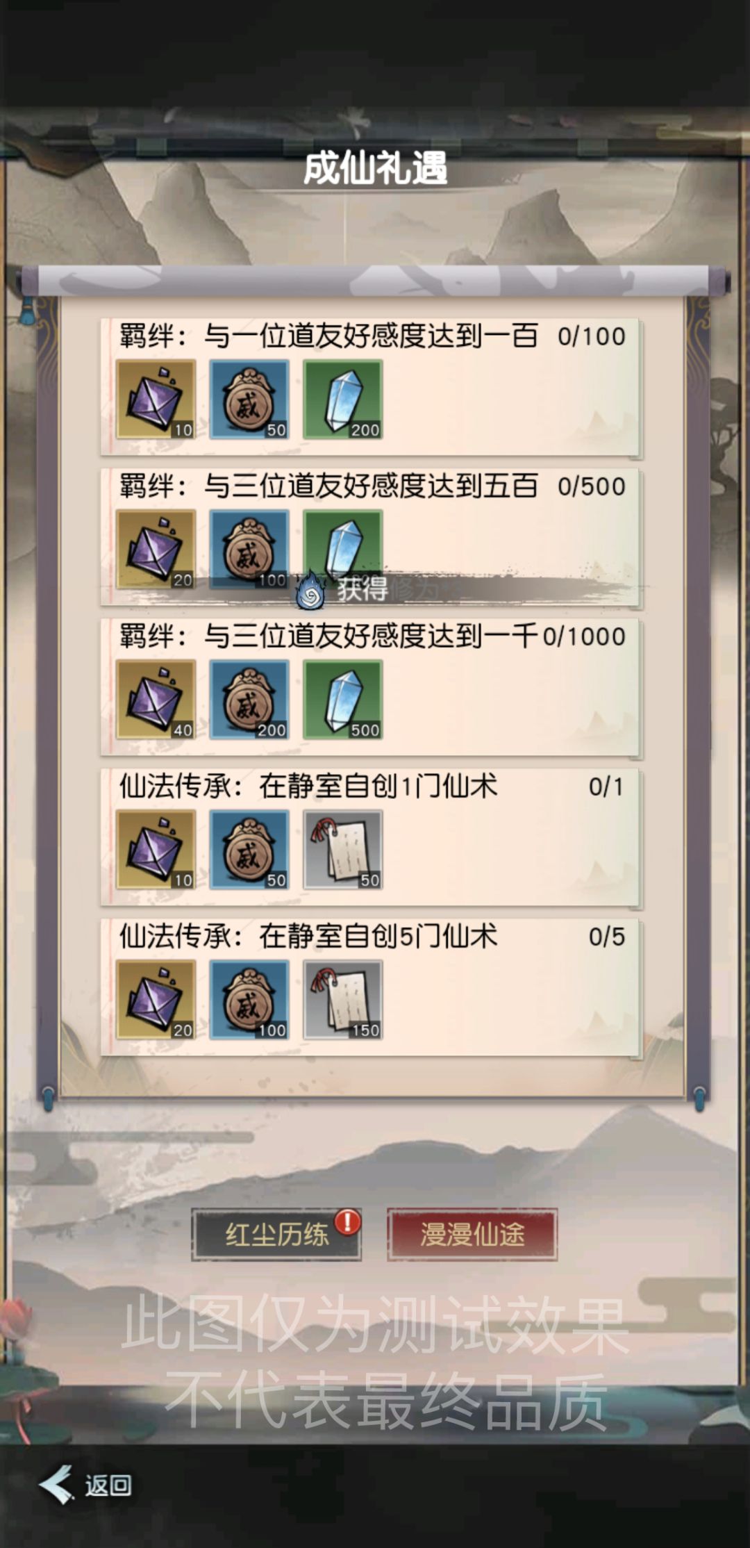 除了好玩之外,怎么让大家玩的开心,玩的“爽”也是我们优化的重点之一,在内部版本中,我们尝试加入了更多福利内容,完成成就获取仙玉,更多的阶段性奖励,到登录领取的仙术券,灵兽券等多种福利