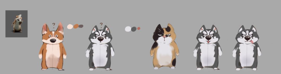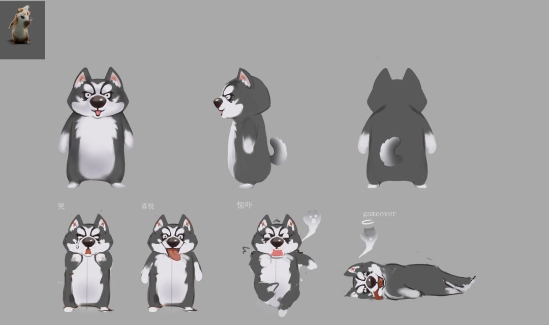 最后,经过慎(随)重(便)的选择,我们选择的二哈,也就是现在的骨大哈在此基础上我们又进行了一系列的表情和动作的设计,力求让角色更生动,更蠢萌
