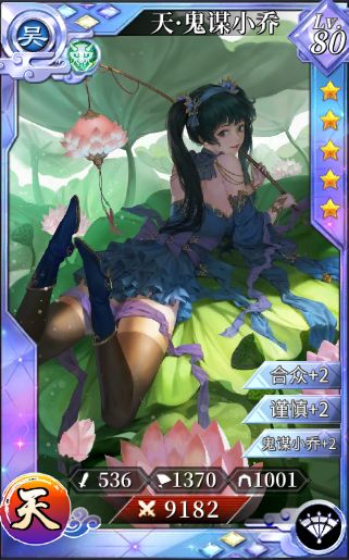 由于费用变高,在释放天命周瑜技能前的buff可以根据敌方的阵型选择性释放,需要快攻时亦可先使用鬼谋小乔的技能以替代鬼谋孙权的加成