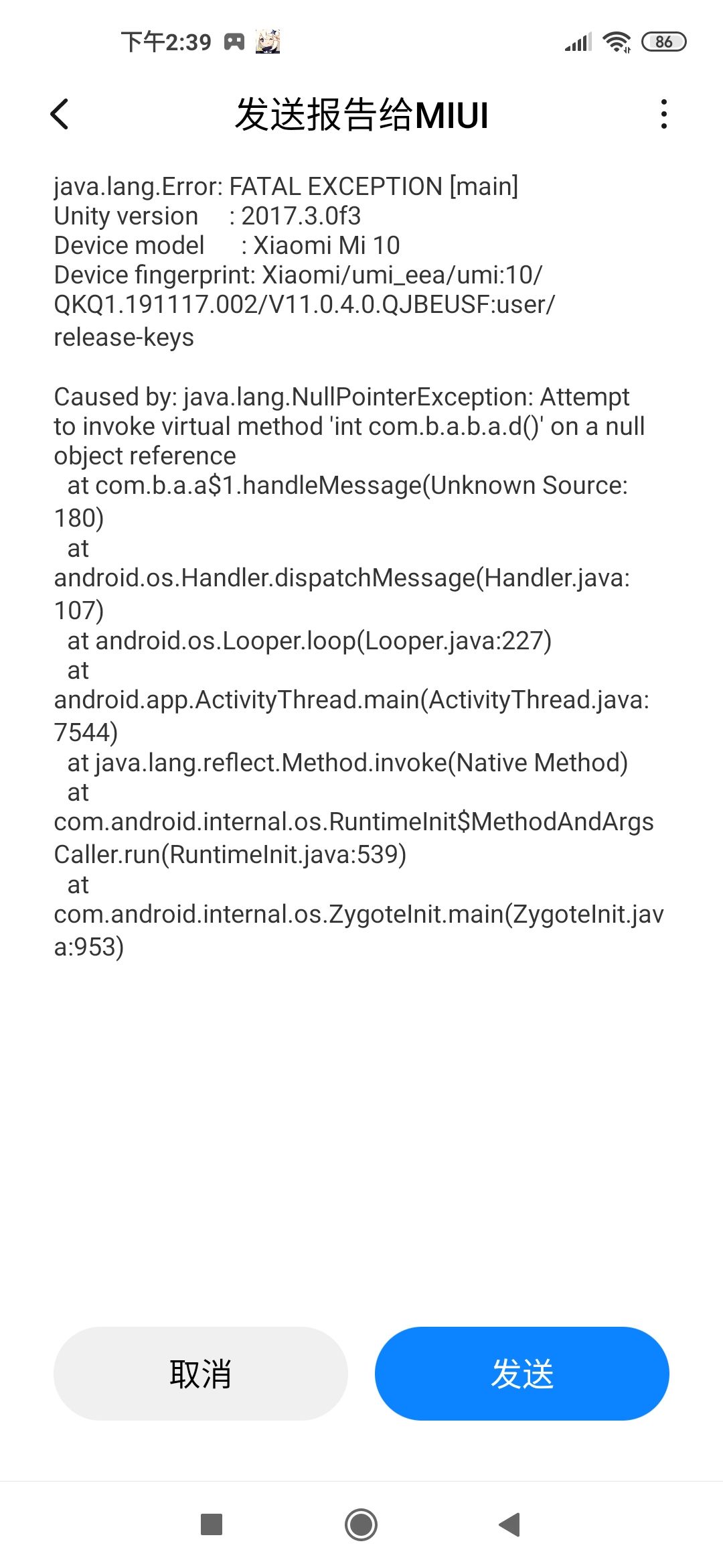 bug回报,游戏无法打开。。 。 空指针,有个类是Null,刚打开游戏就跳出了然后下面是信息的报告