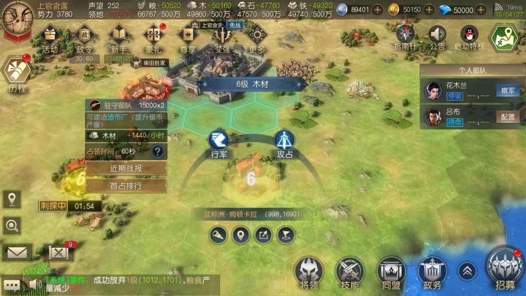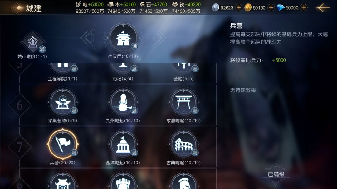 这里我给到的建议就是在没有充足把握的情况下不要盲目去开荒高等级的领土,如果将领等级不足的话可以采用扫荡5级地的方式快速提升将领等级,同时升级兵营,提高带兵上线,加大容错。