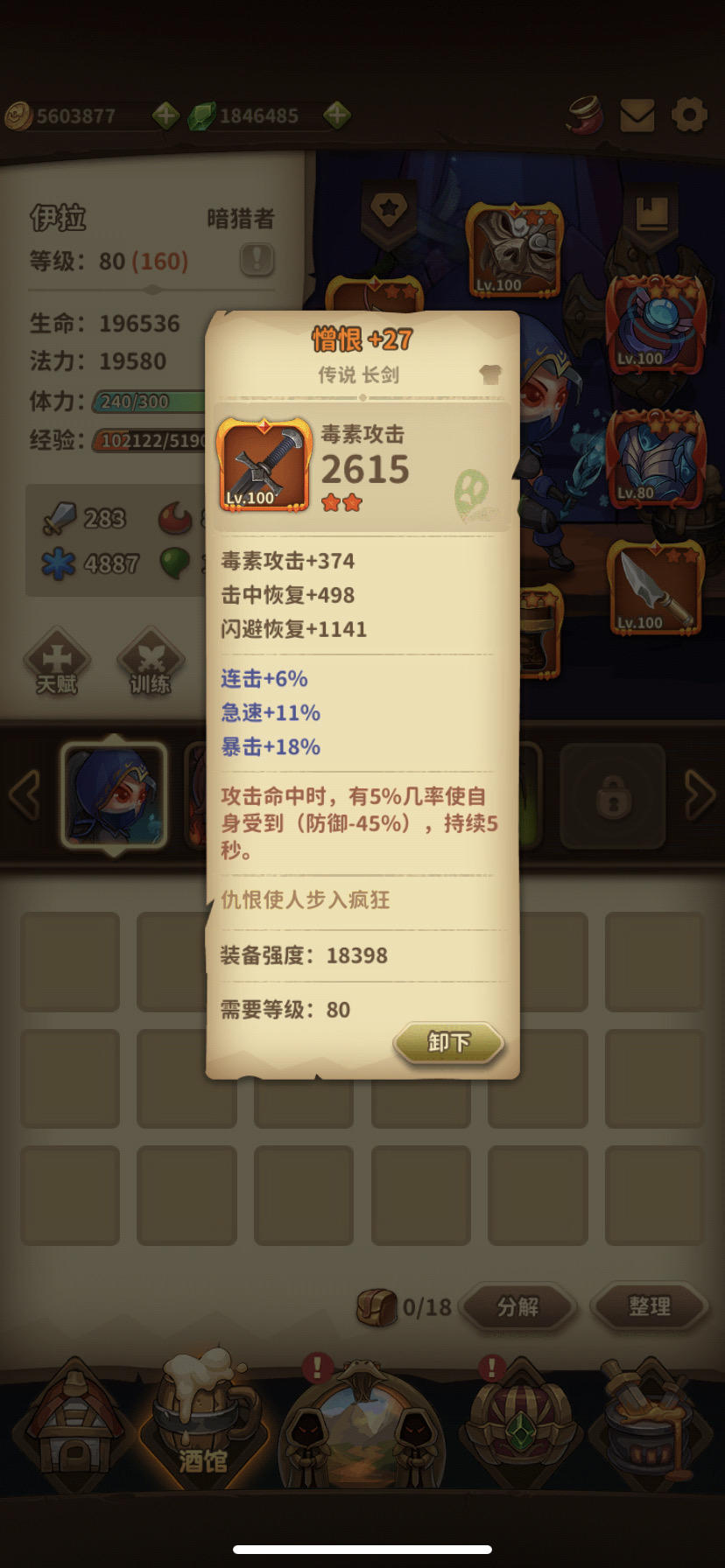 神话装备基本都用过,因为走的一般毒路线,除了音速戒指急速衣服外,没觉得有啥特别好用的,没有击中回血全部合了。后期想配一套闪避套打特定怪。目前25消散,用100装备打100万血的怪,不是装备问题,是确实打不过。消散到50随便刷。
