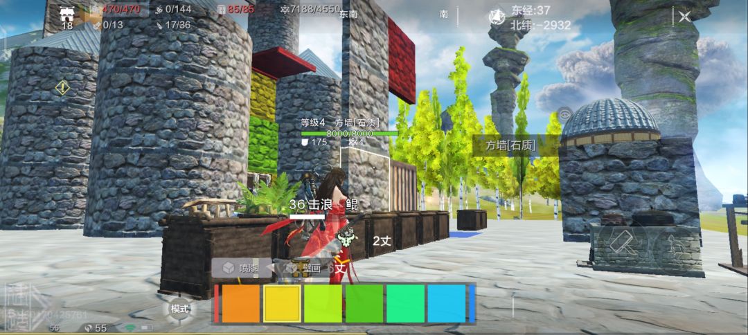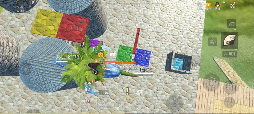 具体建筑,首先东西走向,绿色是人物站位,黄色自己宠物,蓝色临时。中间的墙和红色层板是挡伤害的,红色层板可以挡大部分伤害,中间得墙也可以不用-_-||