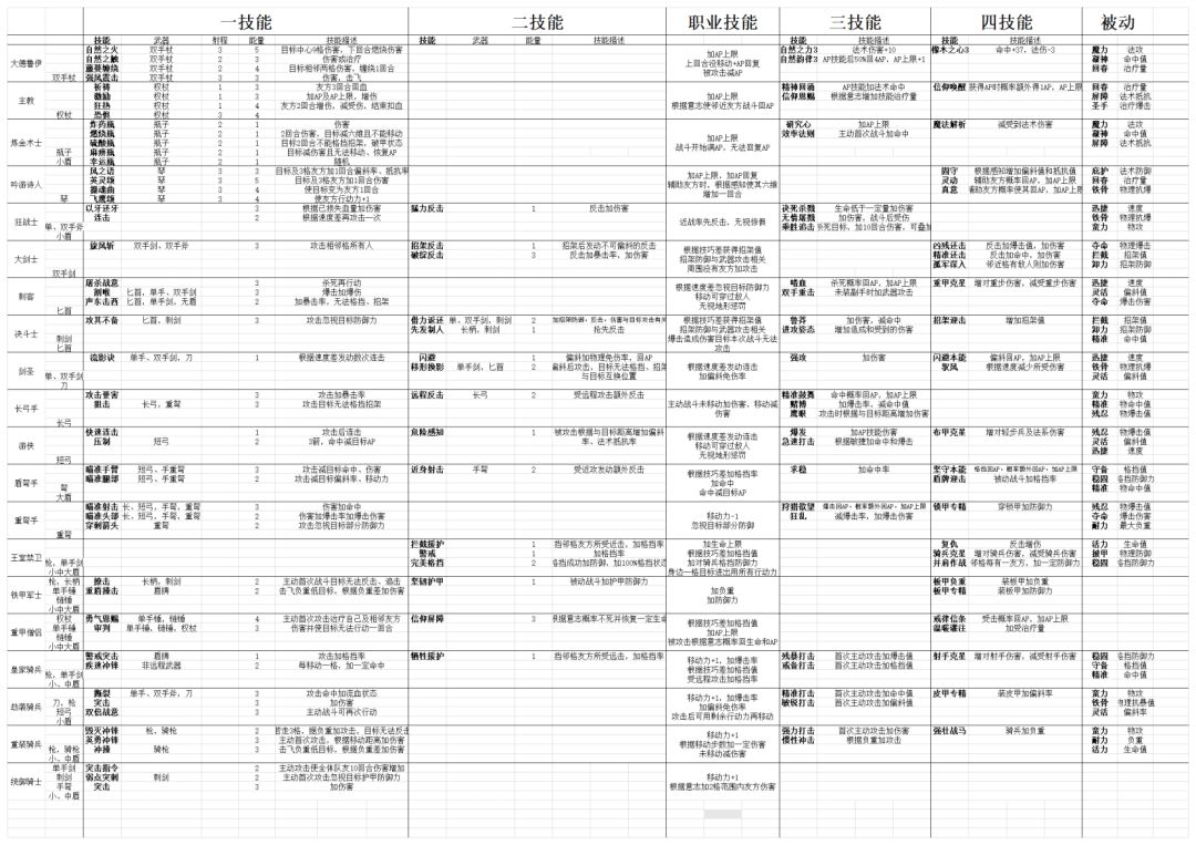 1.以上为精通后三转职业部分技能,更新中。