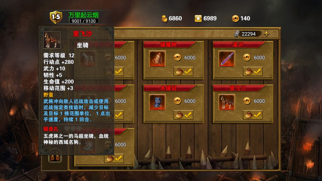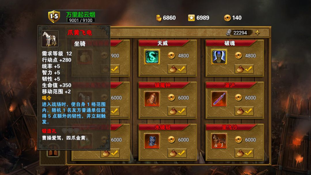 该坐骑统帅和智力,比较适合给辅助使用,刘备曹操孙权周瑜,血量较厚,也是一大亮点。