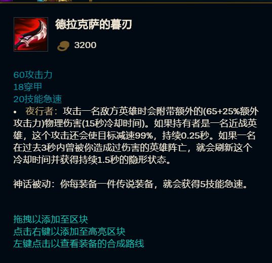 而更过分的则是幕刃这件装备了,幕刃全名德拉克斯的幕刃,但因为幕刃的谐音叫法,同样有存在侮辱女性的意思,同样不能够直接称呼为幕刃。