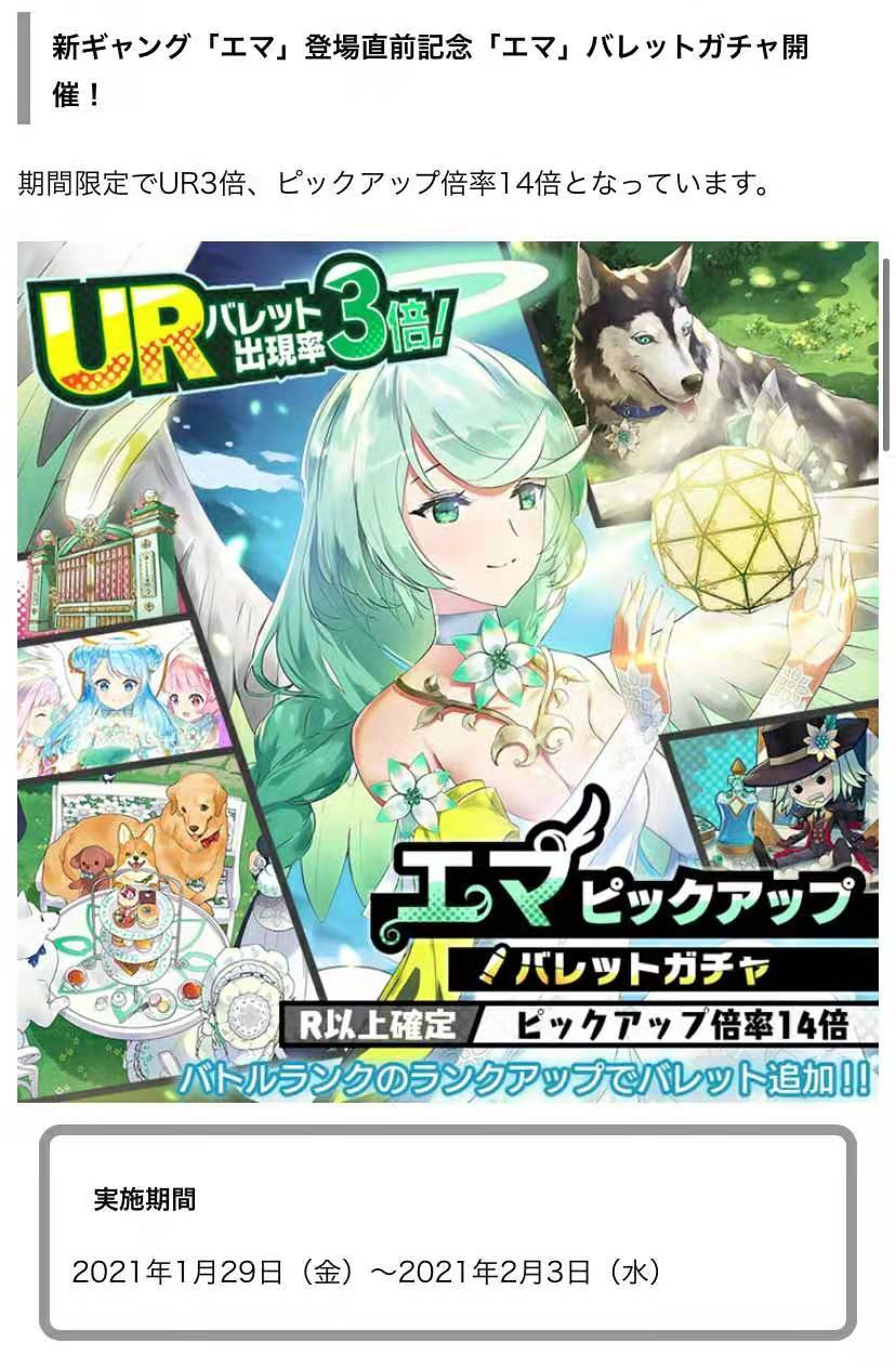 萝莉盾妹子先行卡池开启:1.29~2.3,UR3倍,出现新卡率为14倍,此次更新的卡共计有6张新卡