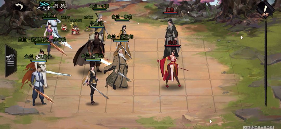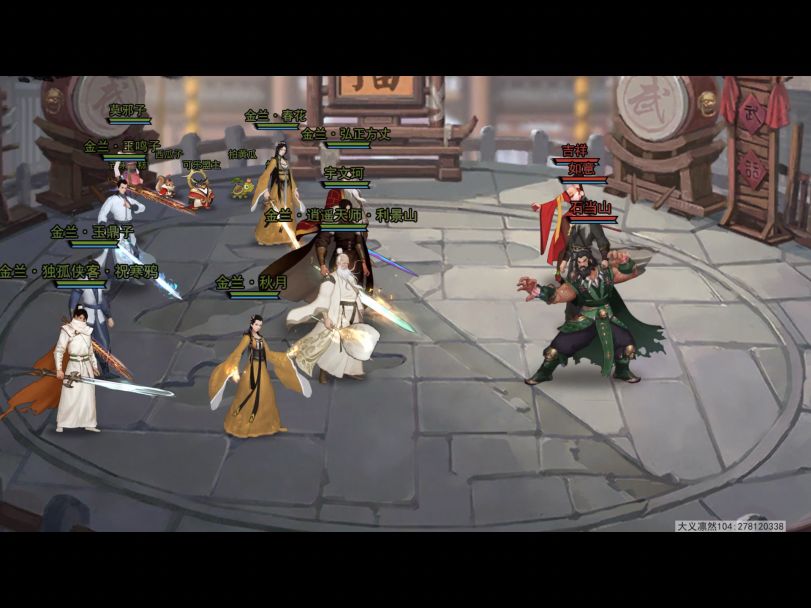 开局依旧是依靠金刚不坏抵挡如意的第一次大伤害,之后使用七星剑集火如意,同时尽可能的减少攻击到老石,老石在血量削减15%左右的时候就会开启全员掉血debuff,而且反击的伤害实在扛不住。玄铁剑的眩晕可以看情况给威胁最大的那一位(如意第二回合和老石第二第三回合的第一次行动会放拉胯秘奥义,可以节省眩晕)。金花的AI设定以九九回血和无咎为主,基本在拼掉吉祥如意之后铸剑主力已经阵亡的七七八八了,不过老石如果只剩一人那也没什么可怕的,主角配合工具人的无咎和回血可以很快击杀只剩孤身一人的老石。