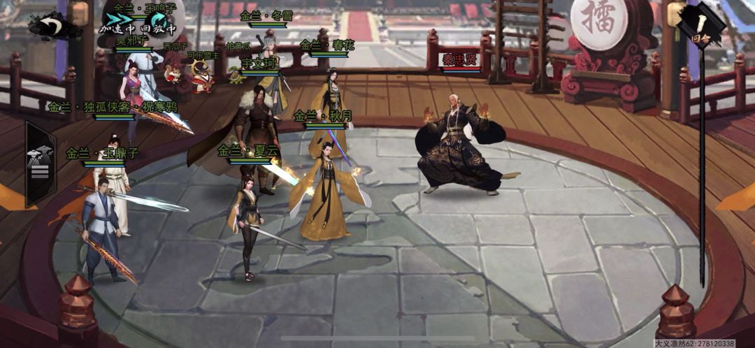 4.6 京城擂台:此时剧情给应该给了大量的暗金装备,强化一下给工具人们带上就可以去参加京城擂台了。作为大决战之前的开胃菜,京城擂台的配置对于这个套路来说算是比较难的。其实对面的配置已经很像大佬们用来打擂台的阵容了,有奶有六脉有太极,还有个不知道为什么用剑的内鬼。(吐槽一下,不知道为啥很多大佬喜欢在以太极为核心的阵容里硬塞一个九剑,遇上我这种直接就是五九剑反击,没带贝爷的直接就刮死了)