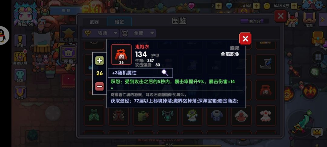 由于暴击抗性的出现,鬼袍他又香了,穿透够了首推鬼袍。