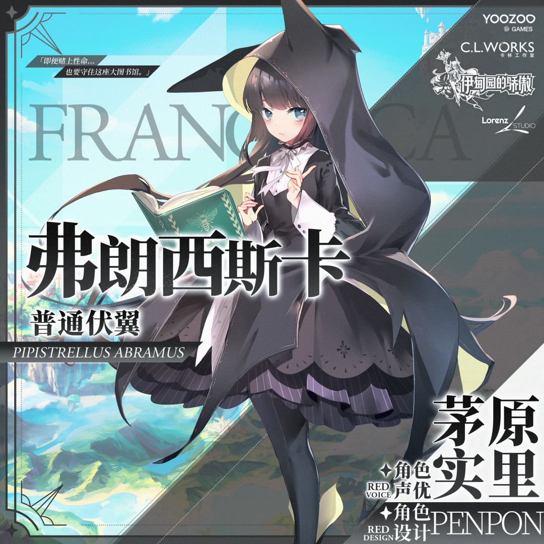 弗朗西斯卡,或者简单些,叫她弗朗吧。她是住在被封锁的中央大图书馆之中的少女。身材娇小,穿着黑色调的长裙,身披斗篷,手不离书本。