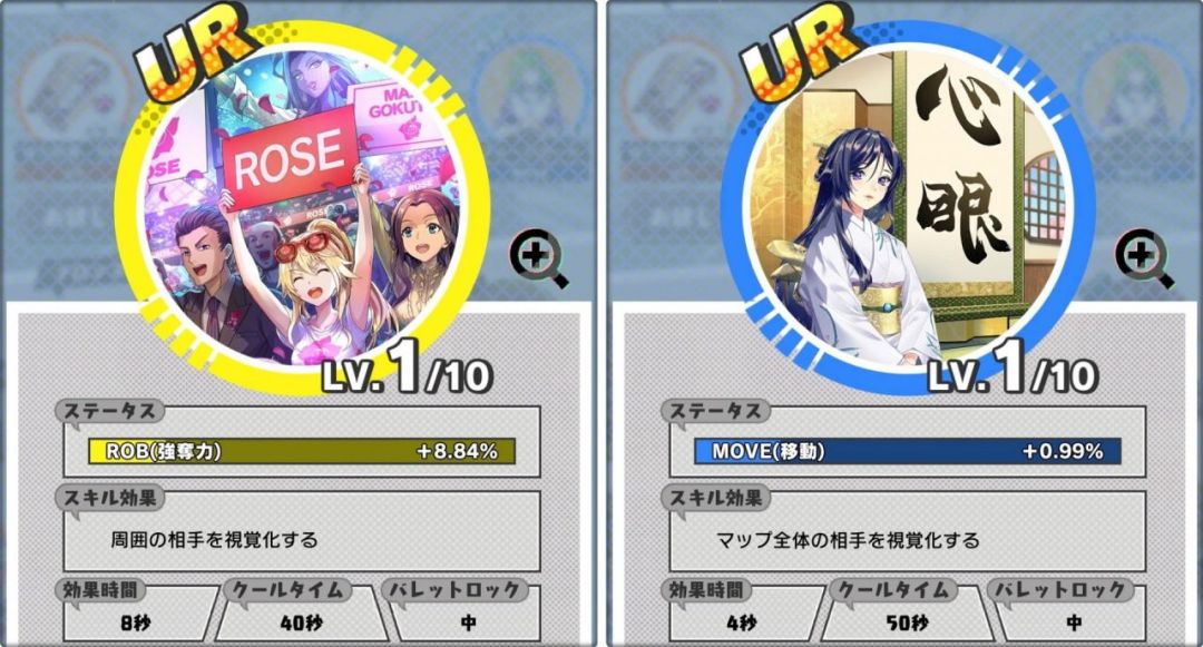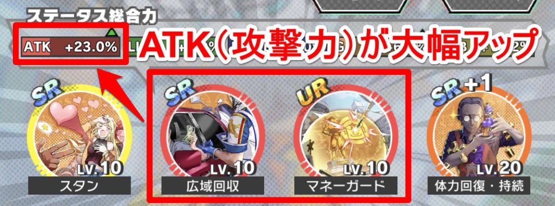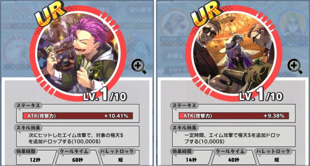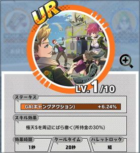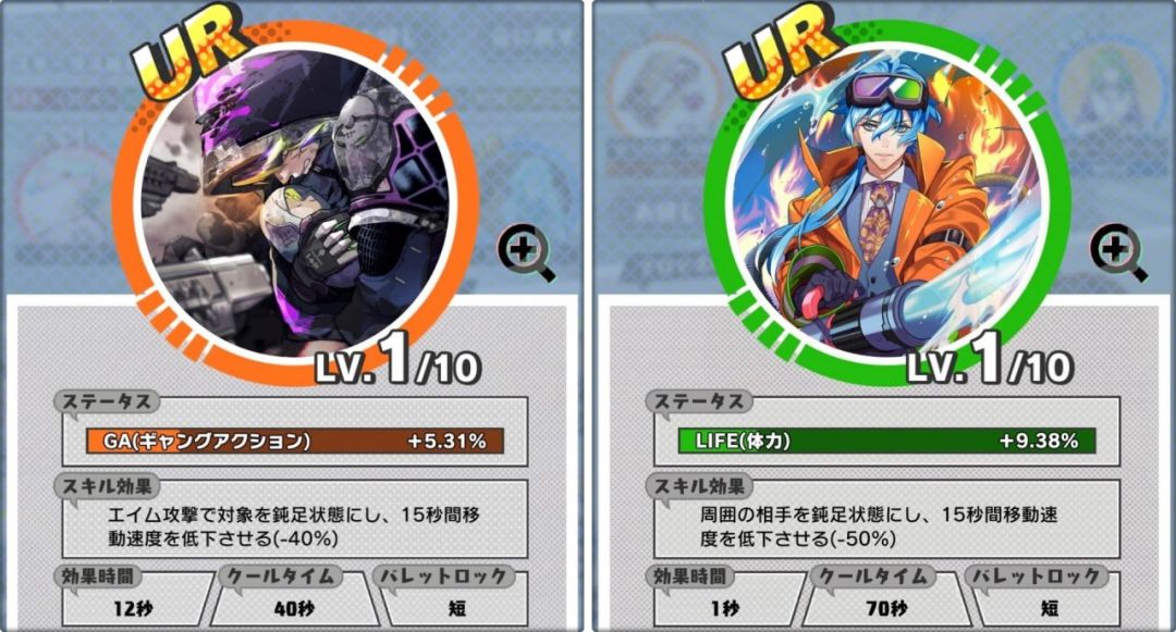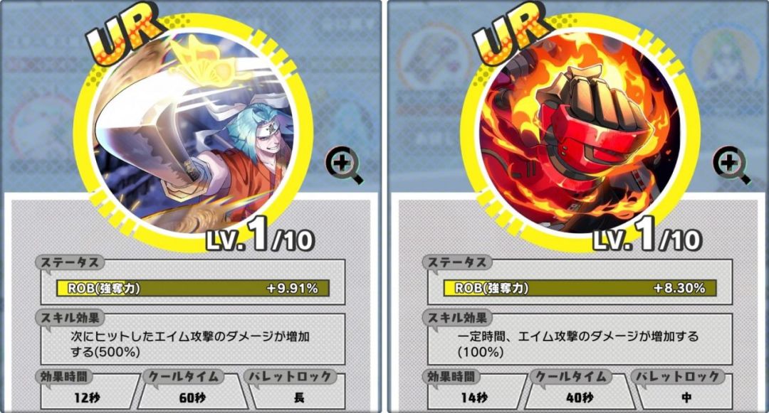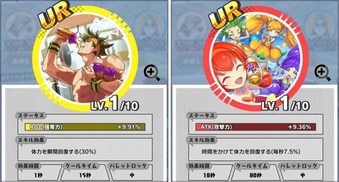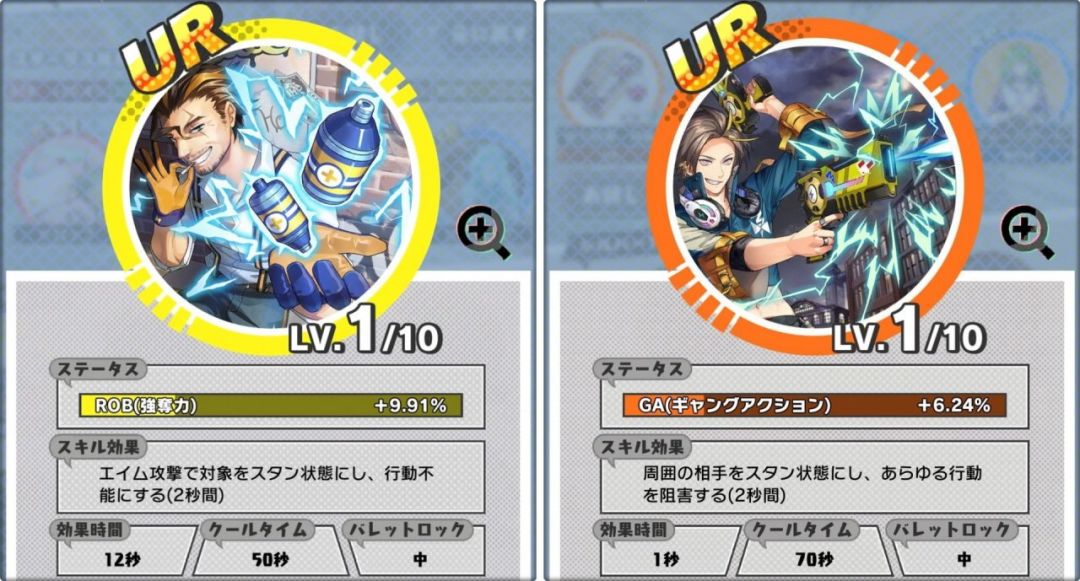 基本前面三个就不用解释了,橙色GA是会影响GA能量恢复的速度以及他的拥有量的,而黄色ROB则会对攻击别人时候打落的钱数量,以及被别人打时候掉钱的数量,还有大招的充能效率都有一定影响,有一点点复杂。