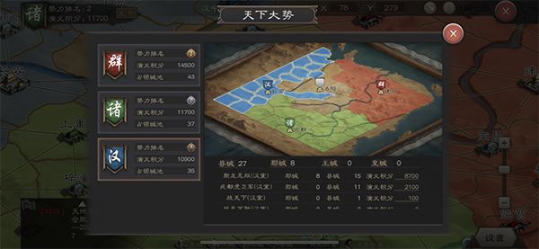 在《三国志威力无双》中,不能小觑任何一方势力。在此之前,本以为汉室会默默无闻,而在今日汉室、诸侯、群雄三方势力分别占领了一座8级城池,这让本就混乱的局势更加精彩起来!相信在接下来,三方势力之间还有更多的较量!