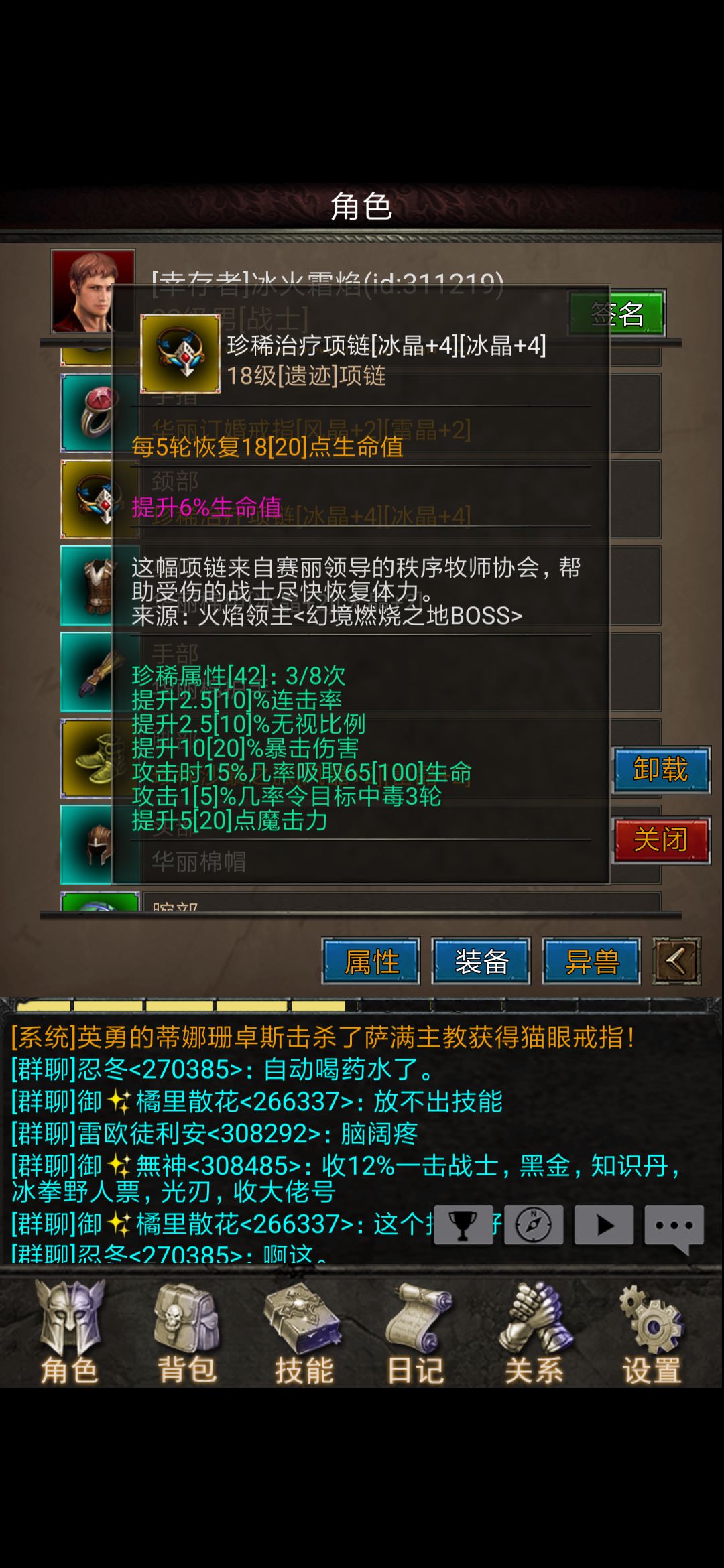 项链:18级治疗项链(下边这个120黑金在拍卖行入手)
