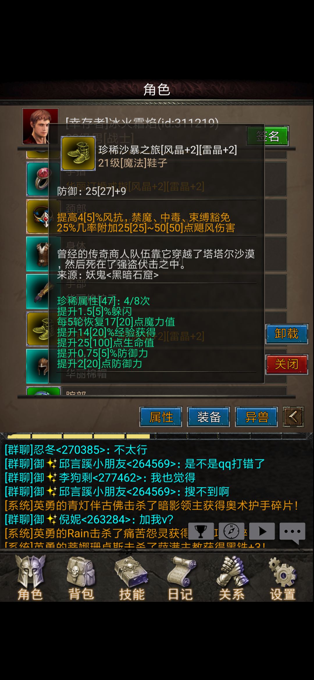 鞋子:21级沙暴之旅(下边这个20黑金,买的时候华丽,自己上的珍稀),法师╱牧师也有一套对应的装备