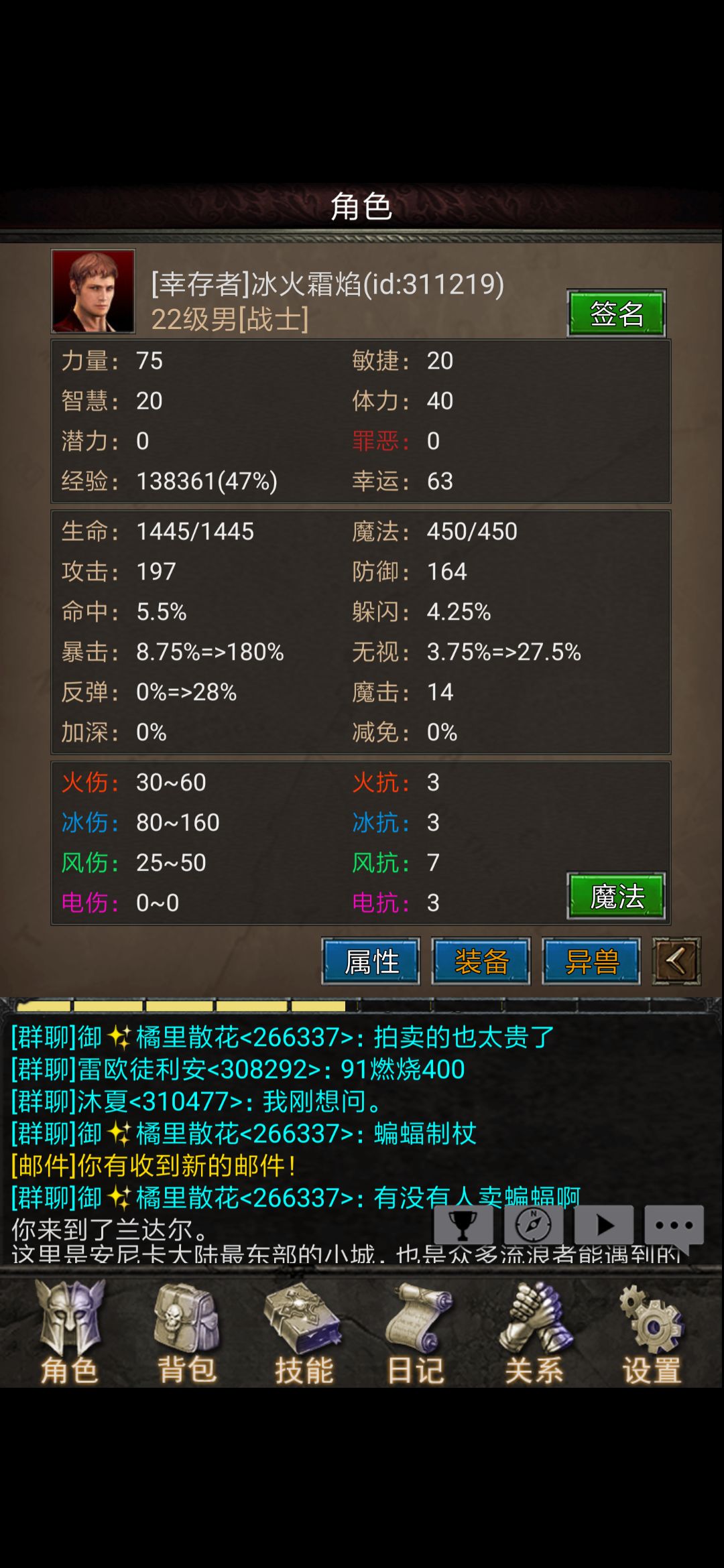 进入游戏跟着主线走一路来到兰达尔小镇,先熟悉下镇上的环境