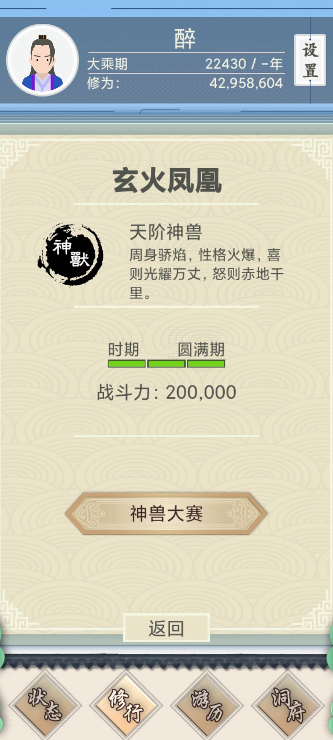 对其他都不用干了😏合体开始先看一次广告吧😄280w修为直接开始种树剩下的买功法跟丹 买个6w6的龙 合体期悟性没满前都可以先不去大乘最好比渡劫再多个3500w-5000w以上修 临嗝屁前渡劫就行