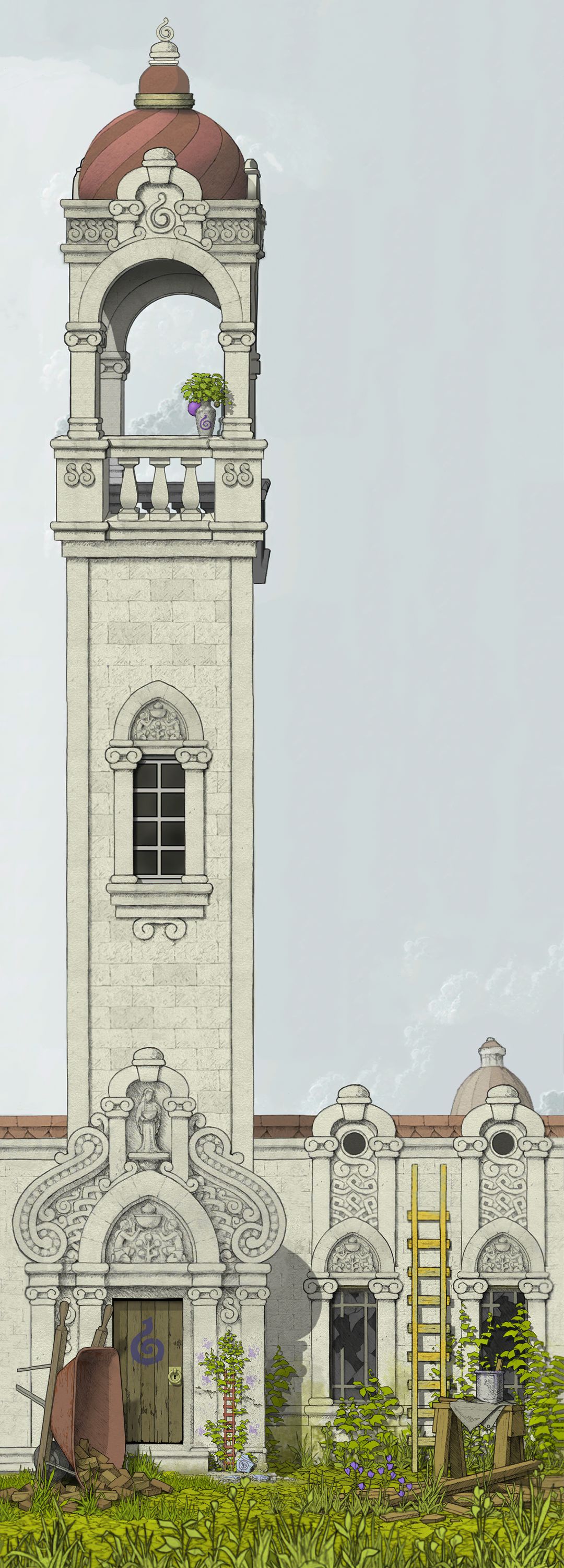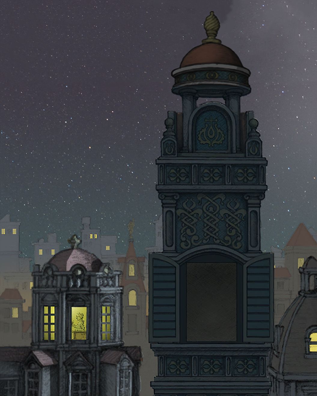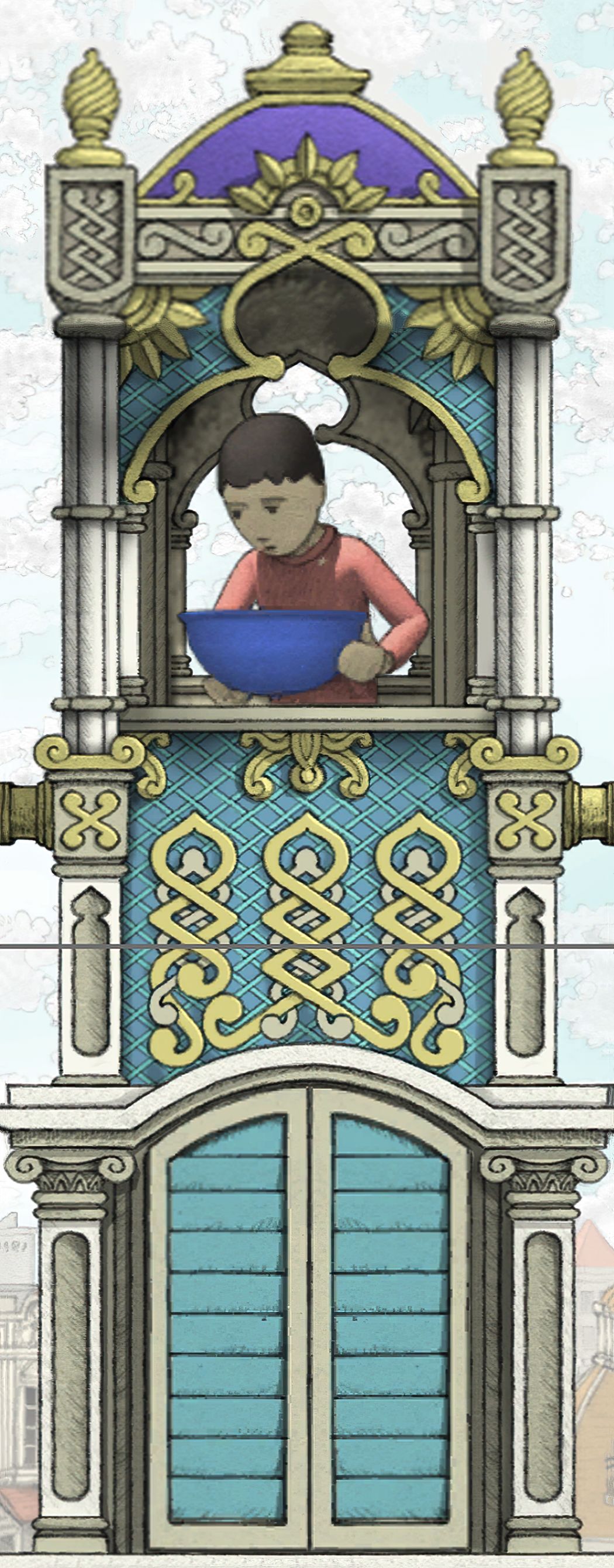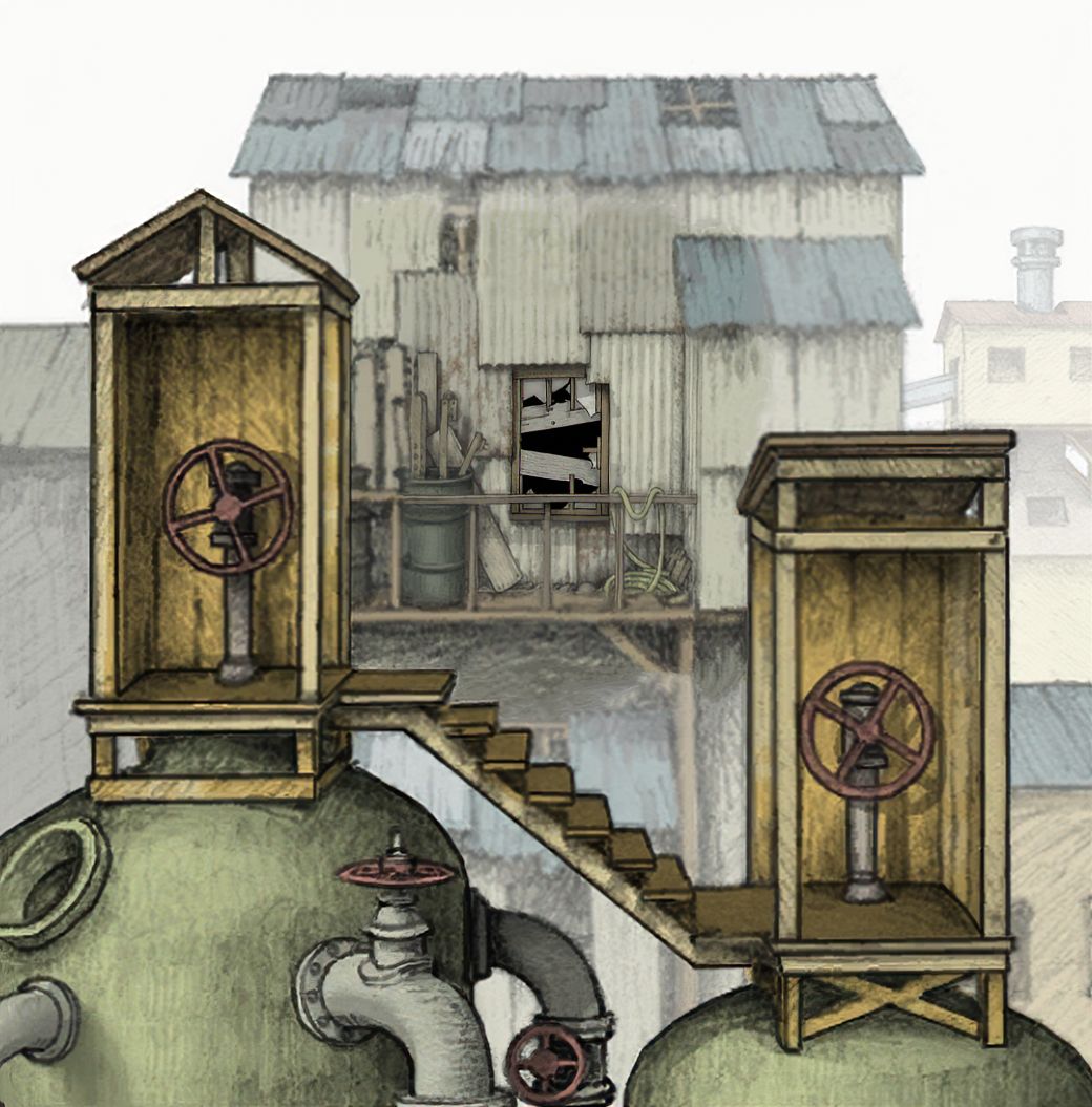 【对应剧情:主角童年时期,蓝色果实线.从第三相框到第四相框场景后.过道台阶场景被GOROGOA加速时间后,整体背景】