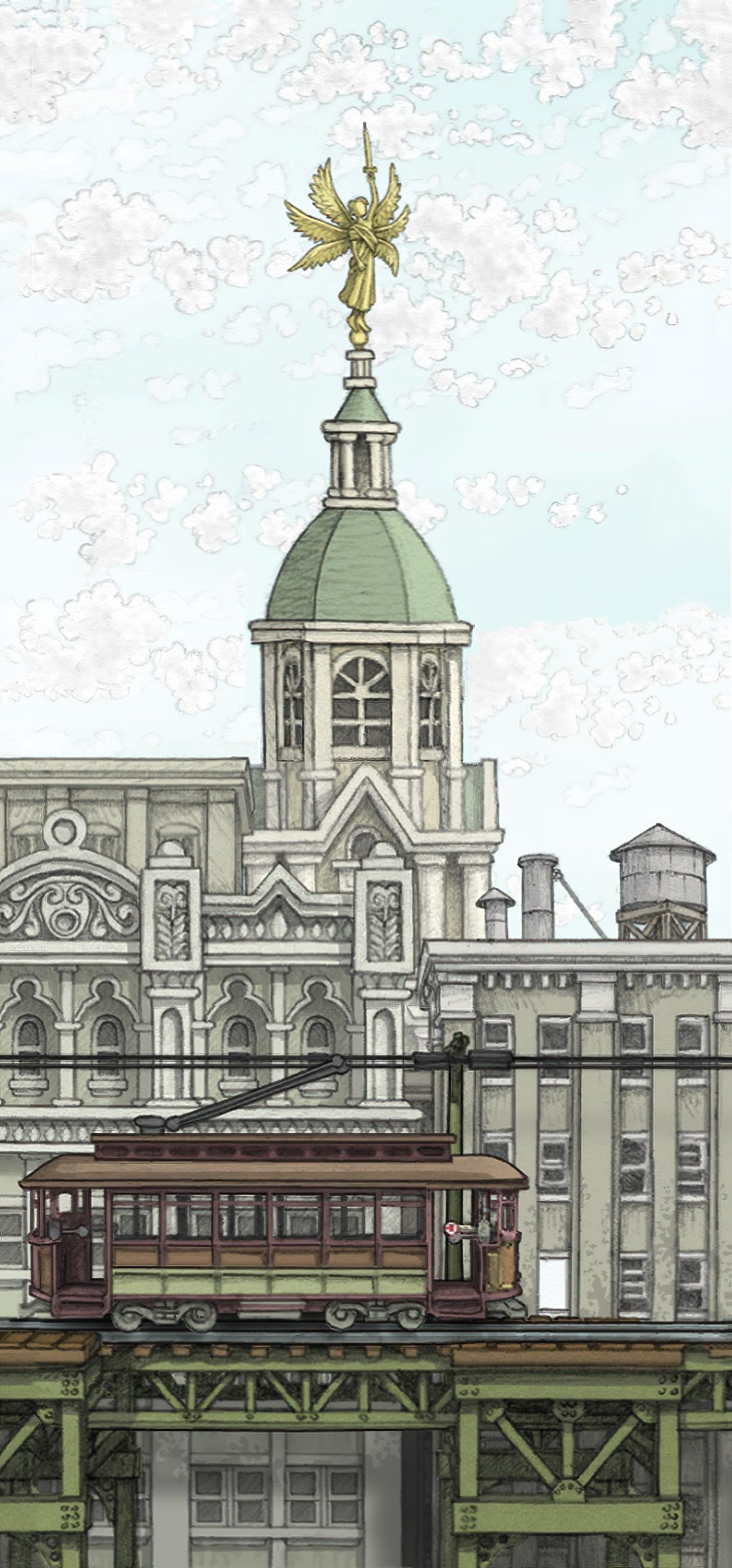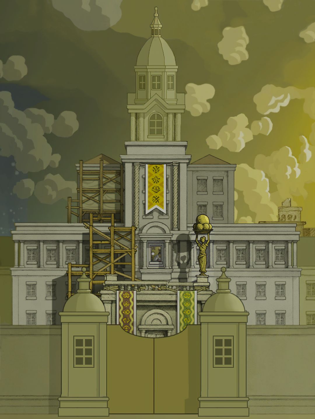 (04-03) Demo章节_青色果实路线:轿子顶部中空部分远处,举剑天使雕塑大楼整体.全景实况 [欣赏版]