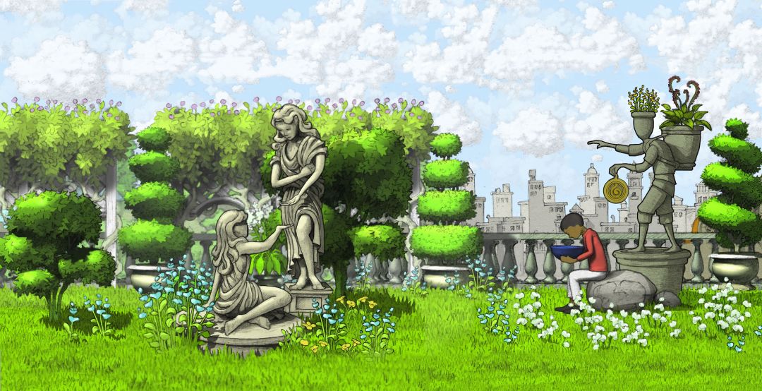 (03-01_0) 童年时期,黄色符文果实路线:楼顶双子观景台场景,白天.全景实况 [欣赏版]
