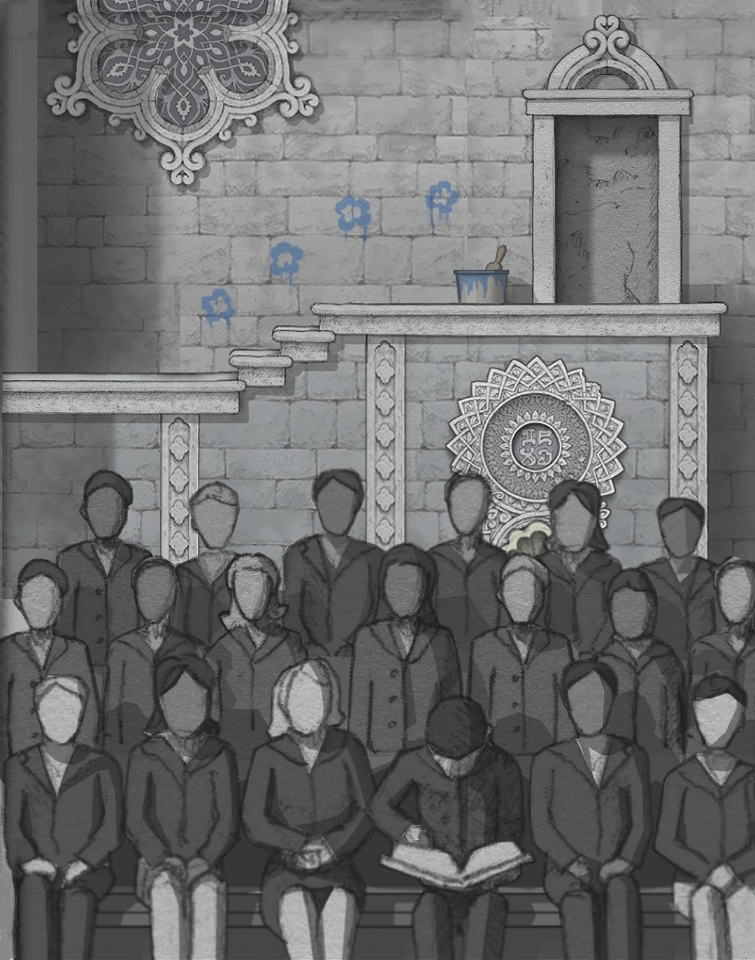 左侧墙壁上肖像,原先构图展示