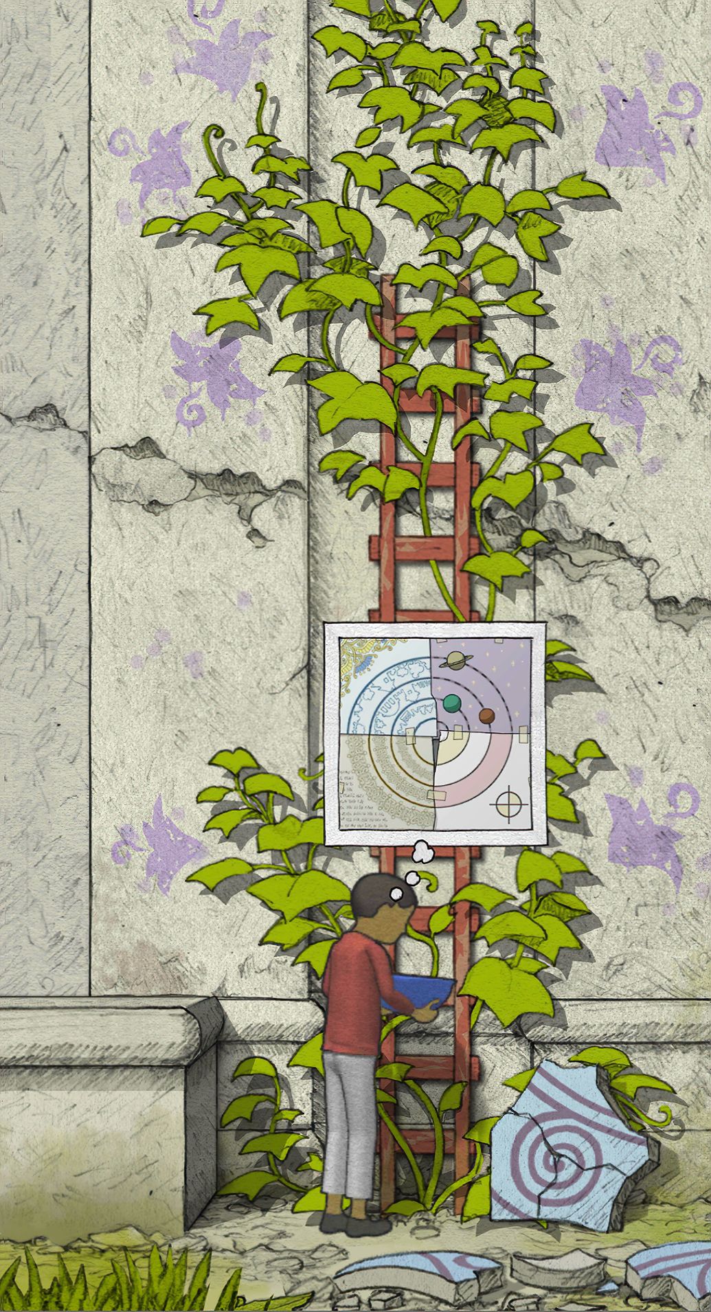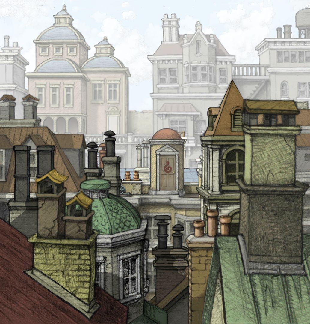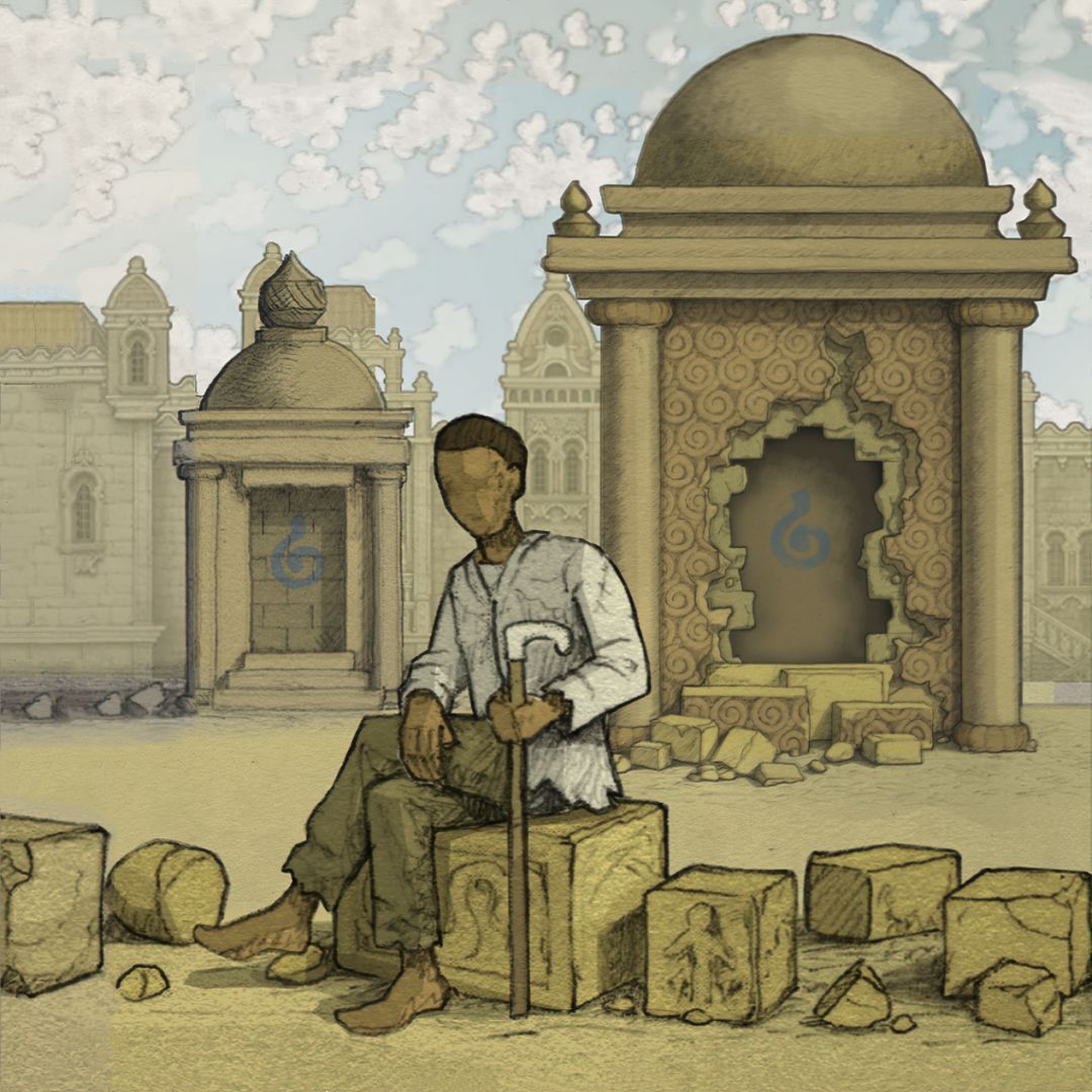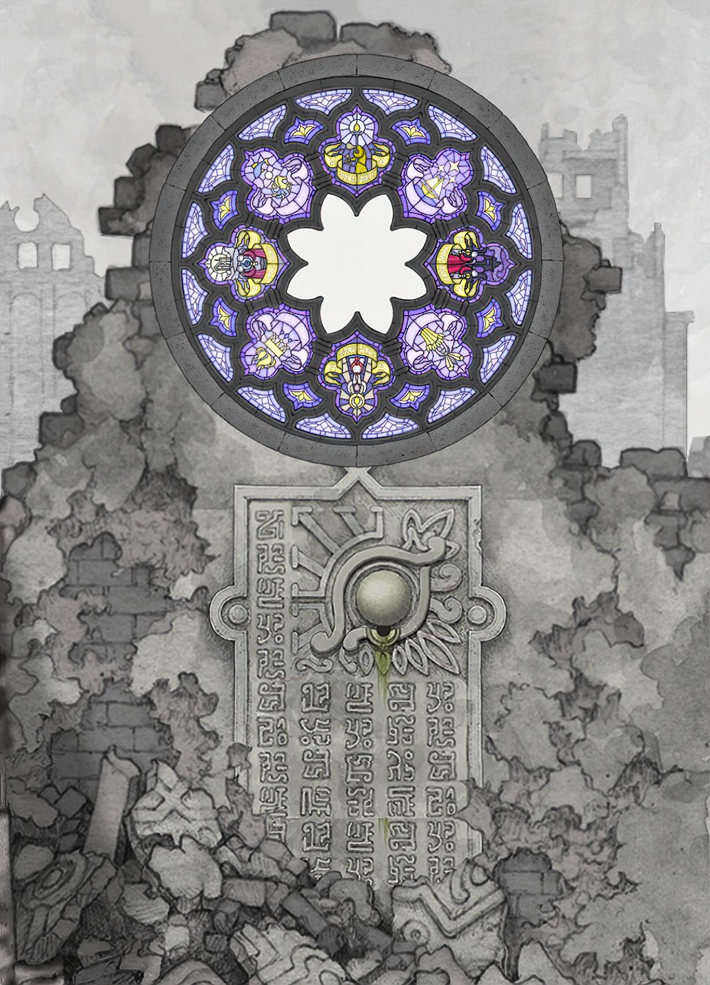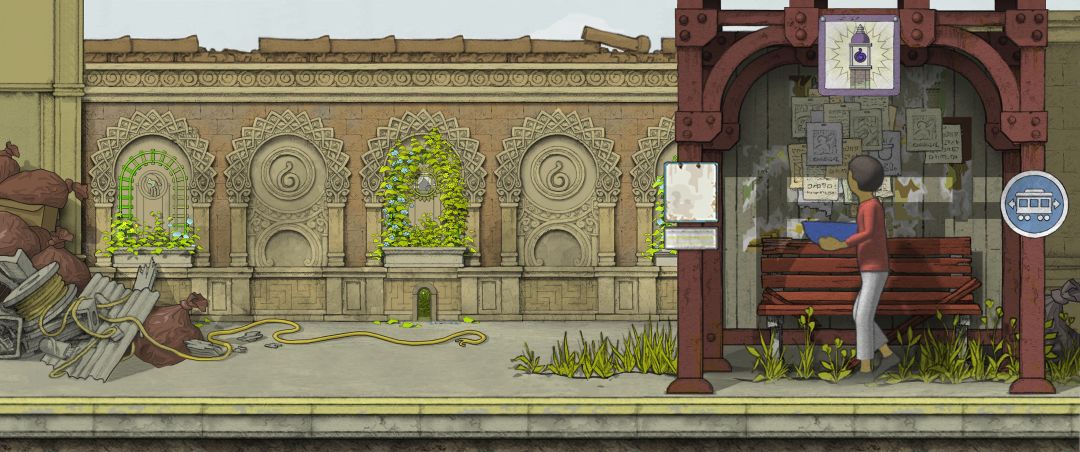 (02-05) 主角少年时期,城市被陨石摧毁.寻找绿色符文踪迹场景,破碎建筑天台的壁画图案 [欣赏版]
