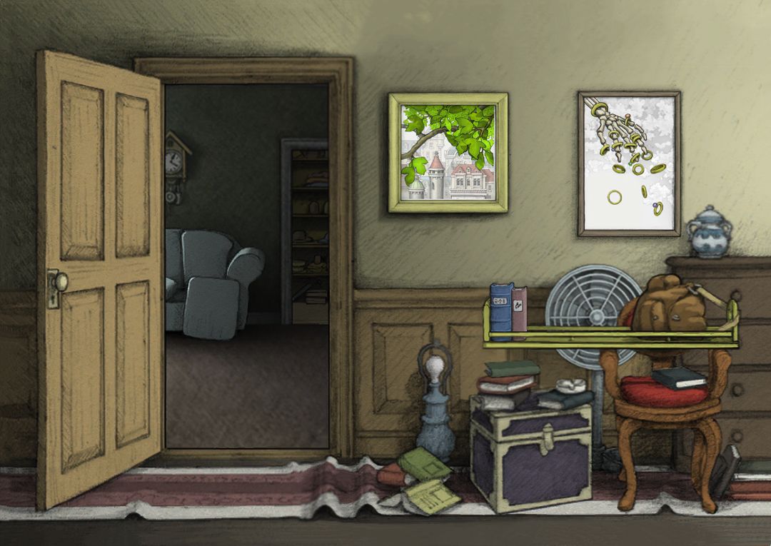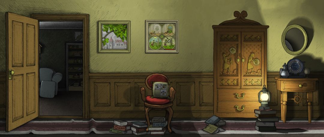 (02-02) 主角童年时期家里:储物间对面走廊,绿色符文果实故事相框 [欣赏版]