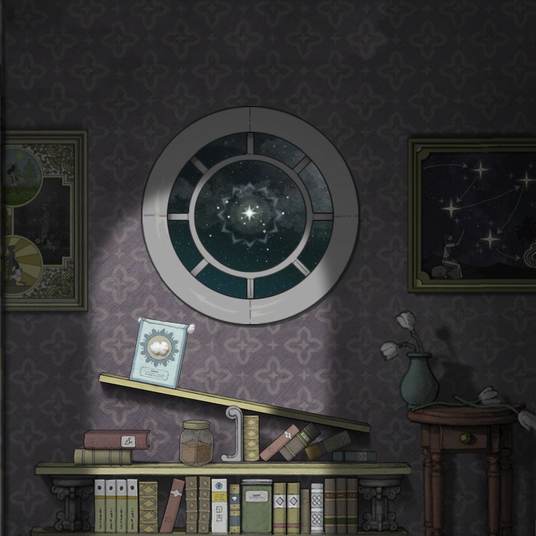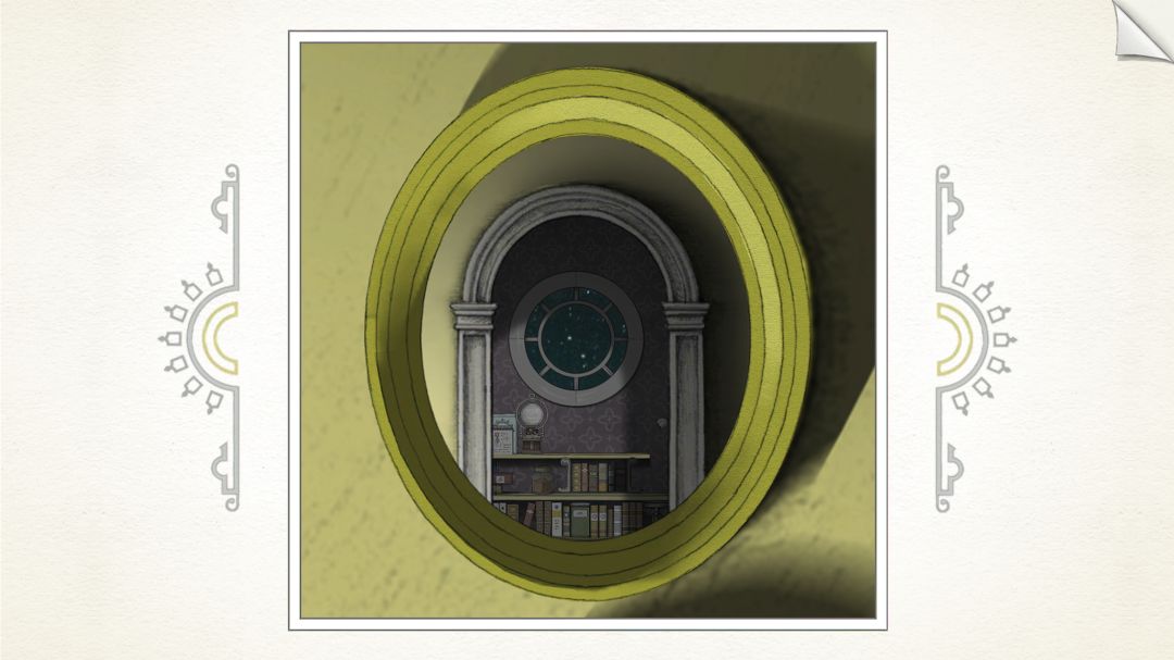 (03-07_1) 童年时期_主角的家里大厅走廊柜台旁镜子对面书房内场景.全景实况 [细节展示.欣赏版]【对应线索:童年时期_黄色符文果实路线,第二盏灯.光亮来源背景(细节解析_右边画框内场景!提示想得到黄色符文,必须摘星四次)】