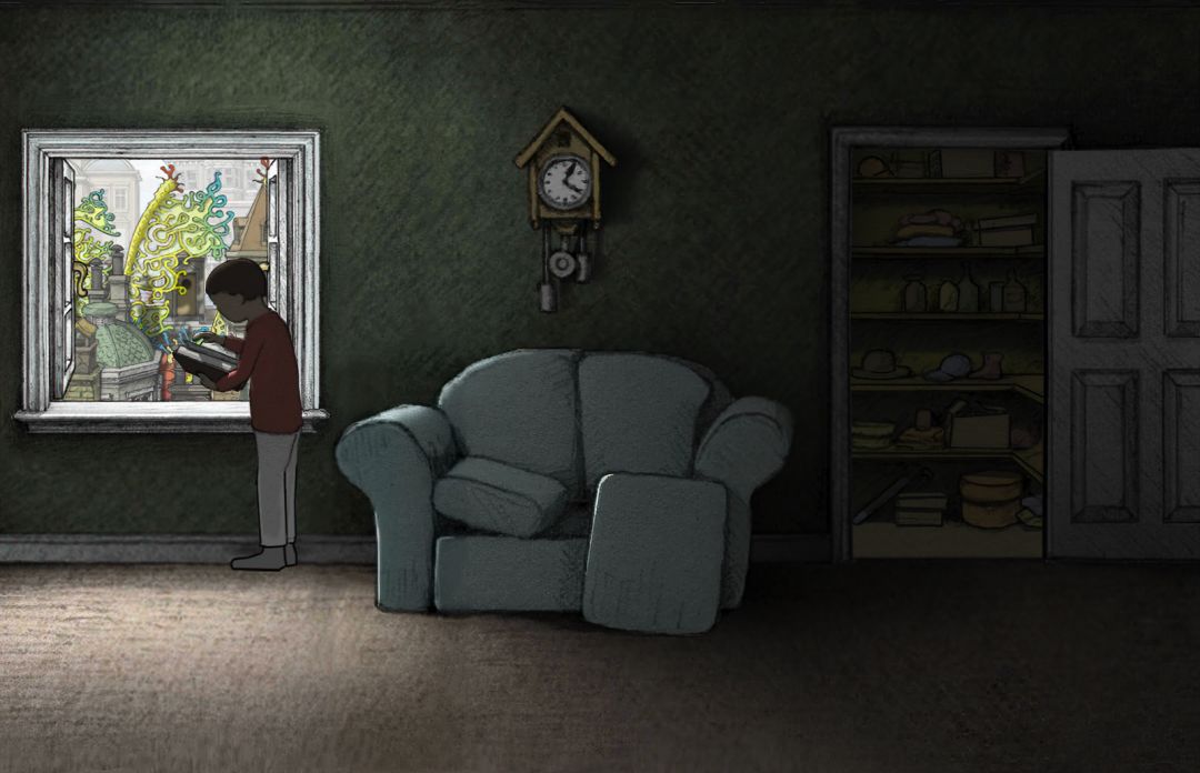 (00-01_2) 童年时期:主角发现GOROGOA翻阅书籍_家里大厅含储物间.全景实况 [书籍全内容展示.欣赏版]