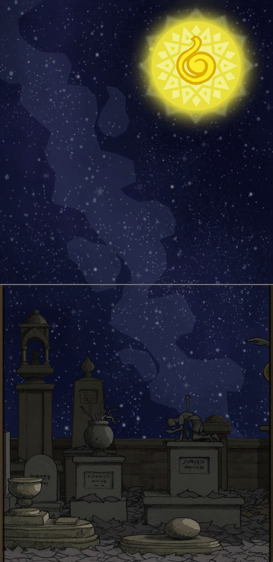(03-11_1) 童年时期,黄色符文果实路线:第三盏灯,灯光来源背景.全景实况 [欣赏版]【马头鱼尾的星象的背景来源是:主角少年时期前期在居住的房间内翻阅的书籍的一页】
