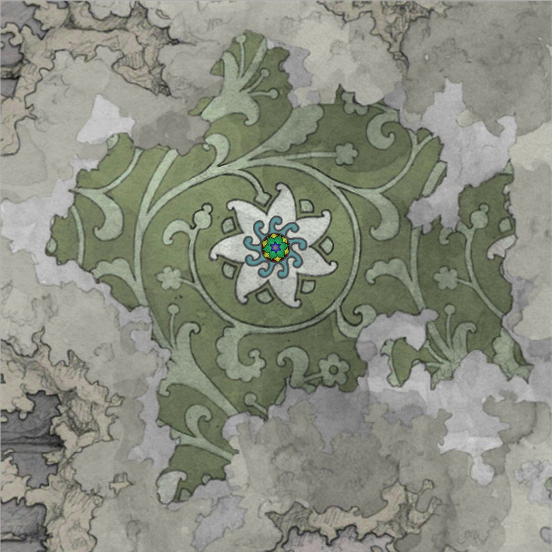 (08-02_2.2) 主角老年时期通过秘境扭转路线:少年时期的主角暗淡背景,破碎花纹墙纸背景内.绿色符文区域 [完美视角.欣赏版]