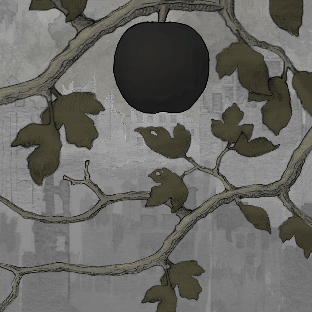 【被陨石摧毁的苹果树相框内部场景】
