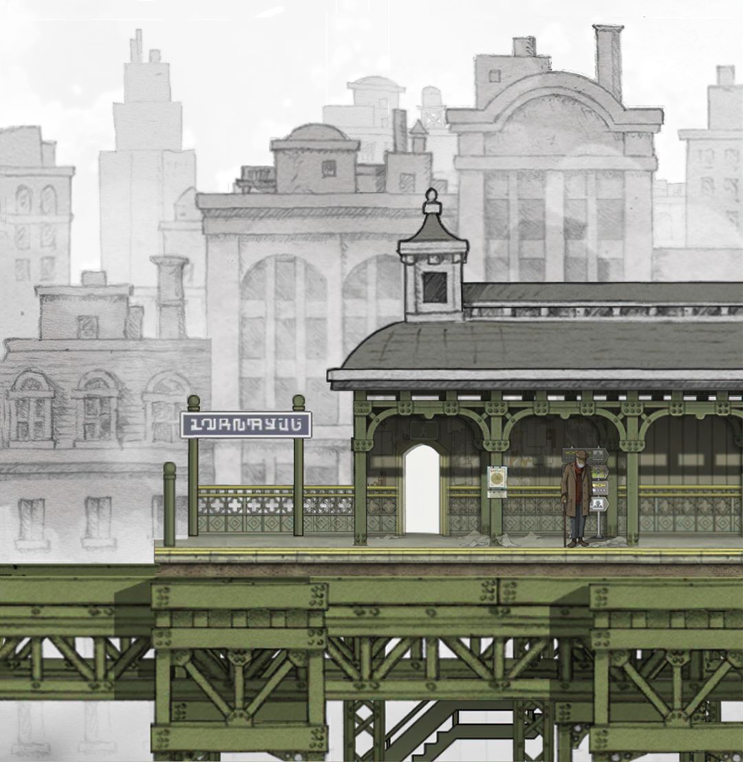(03-03) 主角老年时期:在车站等待火车去紫色塔楼,远景视角.全景实况 [欣赏版]