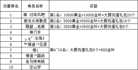 《世界ol》1月新区活动名单