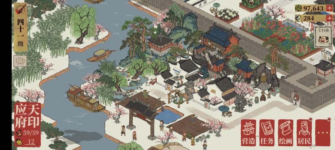 下图是成果图,由于城市整体在重建所以各位看看局部就好。里面设置了一些小彩蛋,涉及到我设计的思路,会在后面慢慢说。这座山庄是朱元璋和刘伯温两人“归隐田园”后生活的地方。为什么想这个体裁呢,因为故事里面包工头朱元璋和打工人刘伯温都为国家大事操碎了心,所以希望在画中两人可以赋闲好好体会生活。(实际情况是老朱的农牧水平比较高,打算让他留在应天好上班,而且那个雕像看上去有点像一头猪)