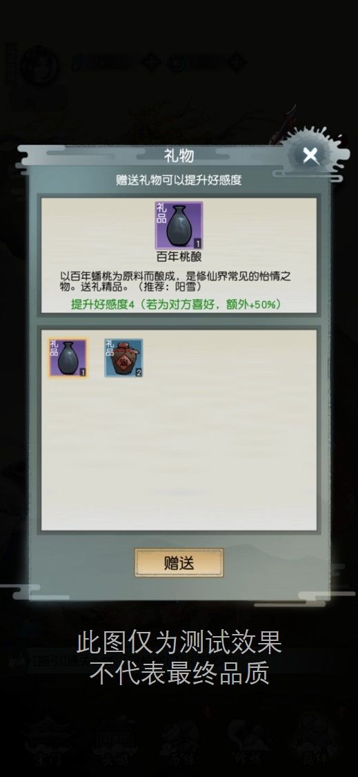 送礼当然不是越贵越好,投其所好才是首要目标!除了完成任务,道友也可以在兑换商店换取更多种类和品质的羁绊礼物。不过礼物多种多样,阳雪小姐姐究竟喜欢什么?道友不要方,我来偷偷告诉大家,阳雪小姐姐喜欢的可是“酒“哦,一般人我可以不告诉他ψ(*`ー´)ψ