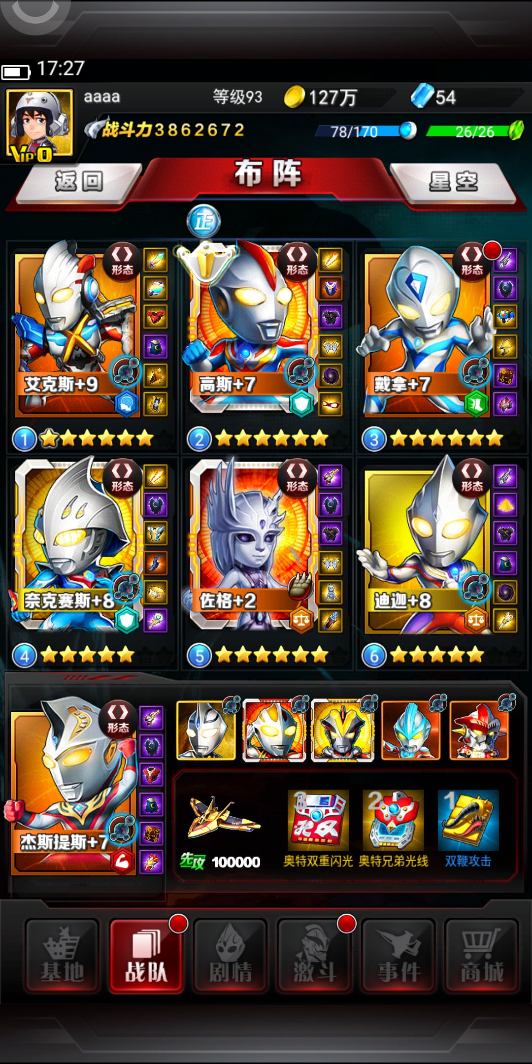 之前我看到有个人,没有充钱,上了几个红色角色,而且战力都好高,我也想,目前只有一个红色艾克斯。