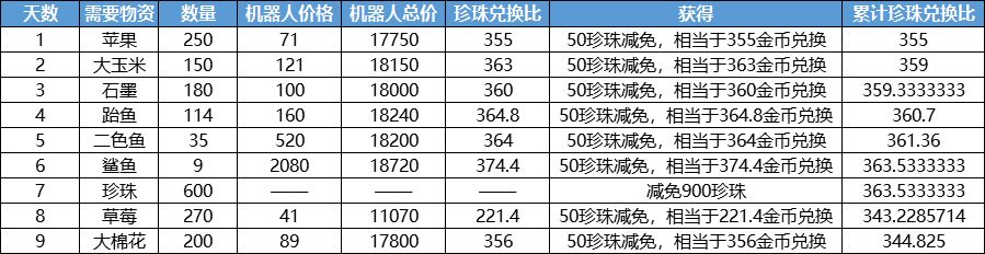 3138/5888=53.3%,相当于打5.3折。减免快一半了,还是值得去做的。当然,没有物资可以慢慢攒,没有珍珠也可以慢慢攒,想白嫖的就可以去骂策划了,毕竟没有完全免费,对白嫖党来说就是不好的活动。