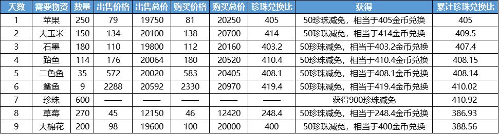 原先预估共计减免=25*50+5*300=2750。但虫套价值5888,减去2750也需要3138,也就是缺口138珍珠。估计这138珍珠会分配到剩下四次的上交中或者归到最后一天的上交珍珠中。也就是预计5次要上交3138珍珠。